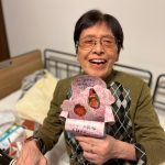 本日はご入居者様のI様のお誕生日です。今年の冬は寒い中、頑張って一緒に病院にも行ってくださいました。寒くないですか?とお聞きしても大丈夫と気丈にふるまってくださいました。これからもその強いお気持ちでお元気にお過ごし頂きたいと思います。おめでとうございます。