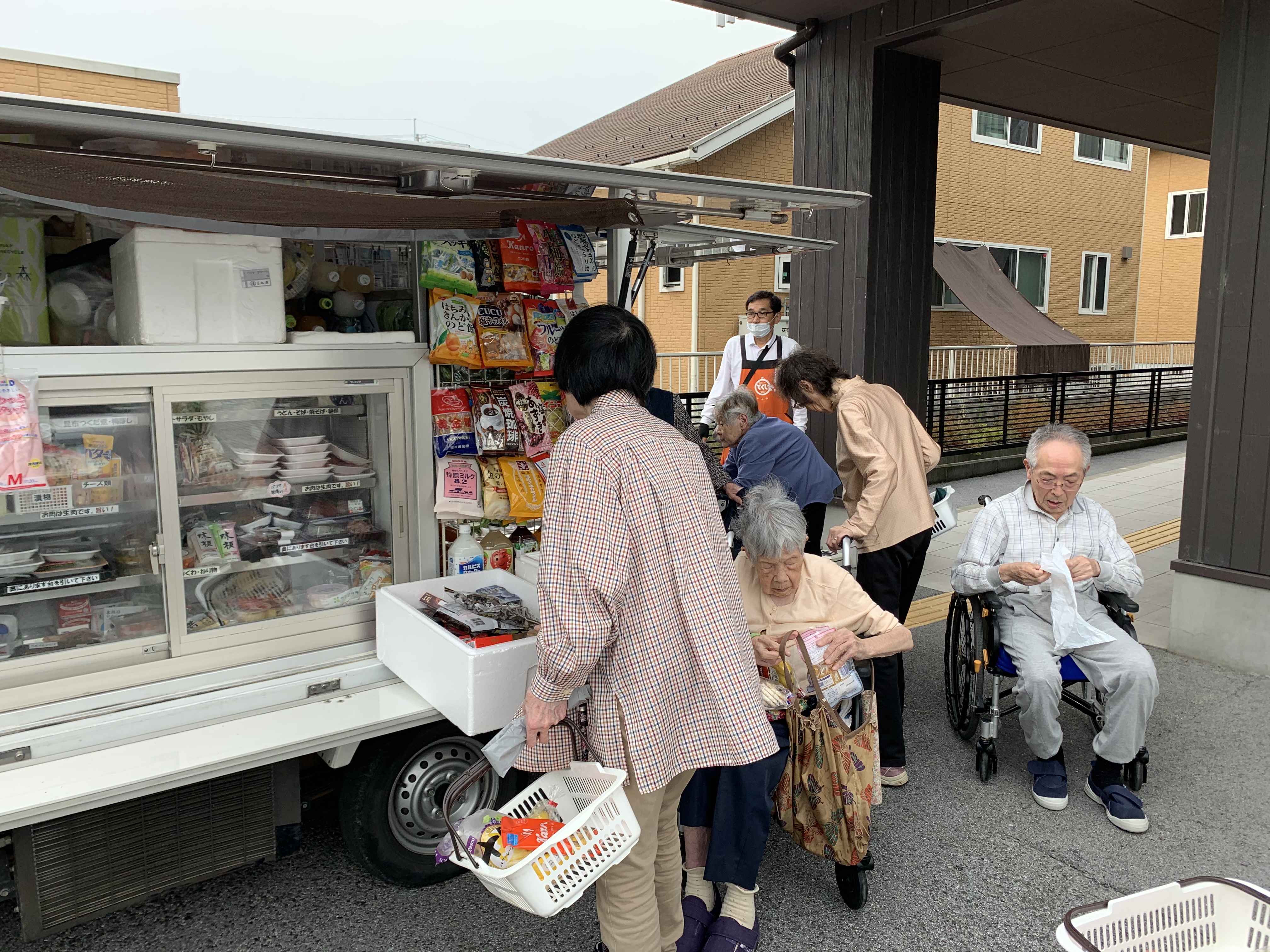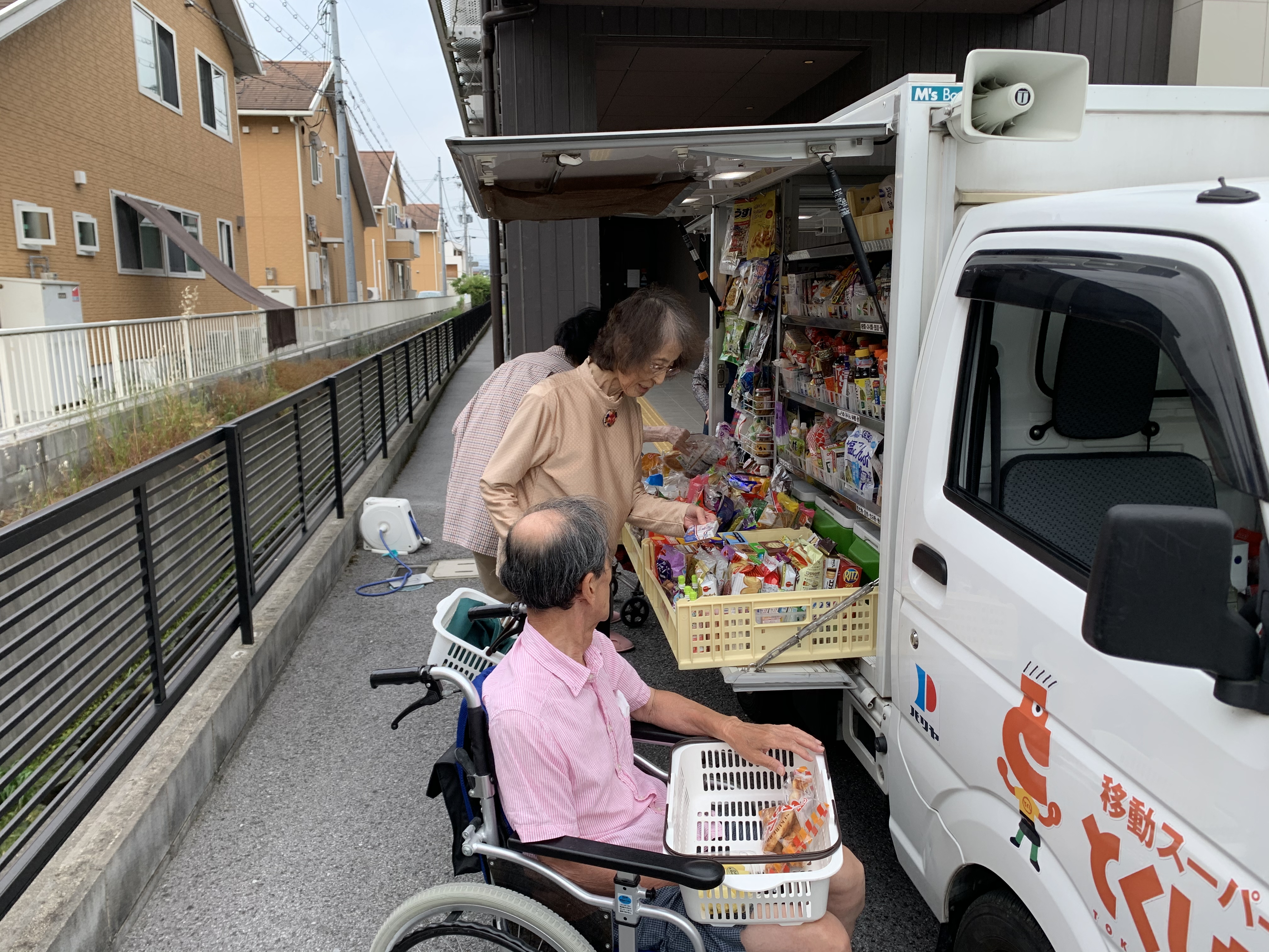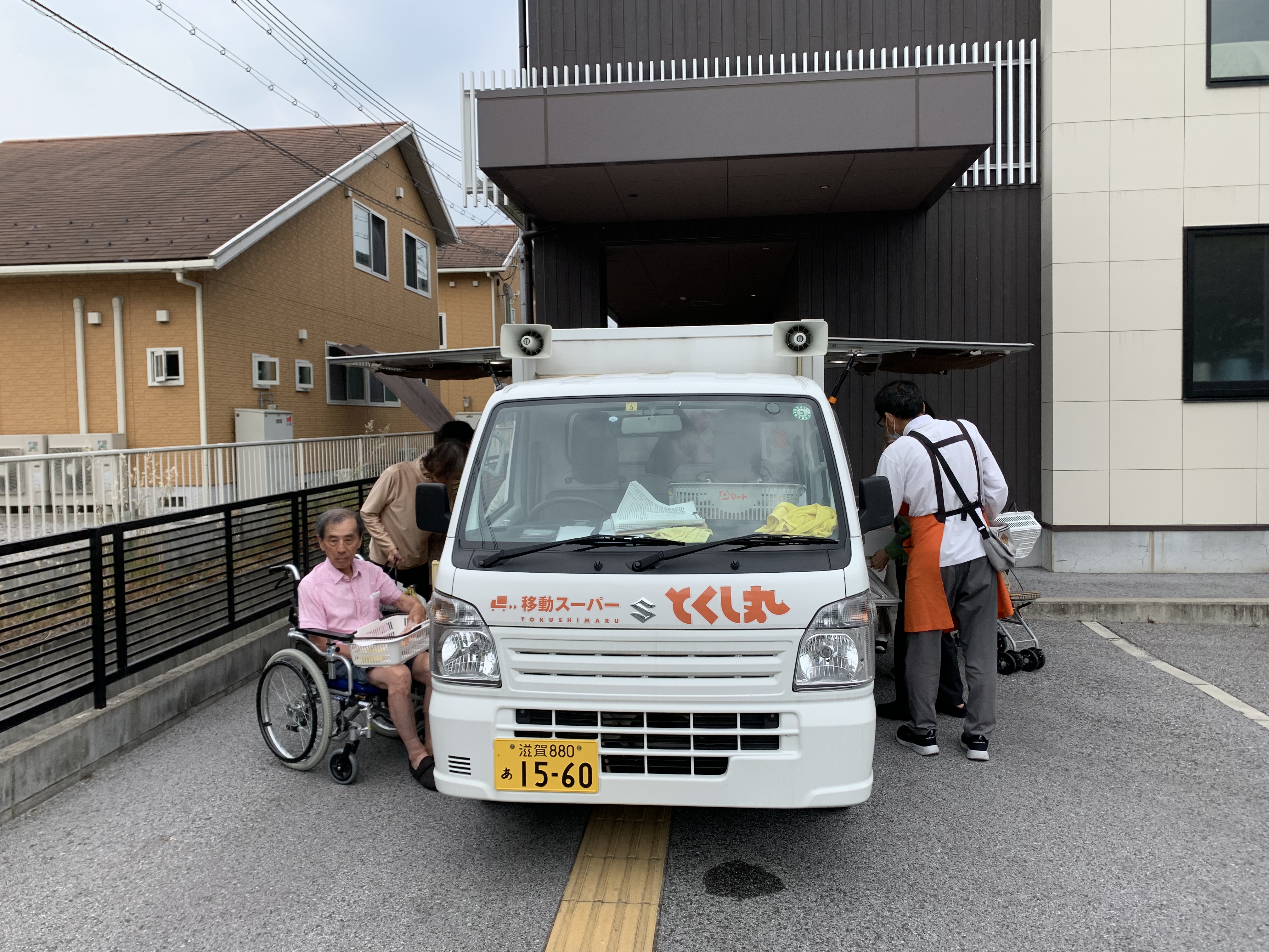 天気も良く玄関から移動スーパーとくし丸の
