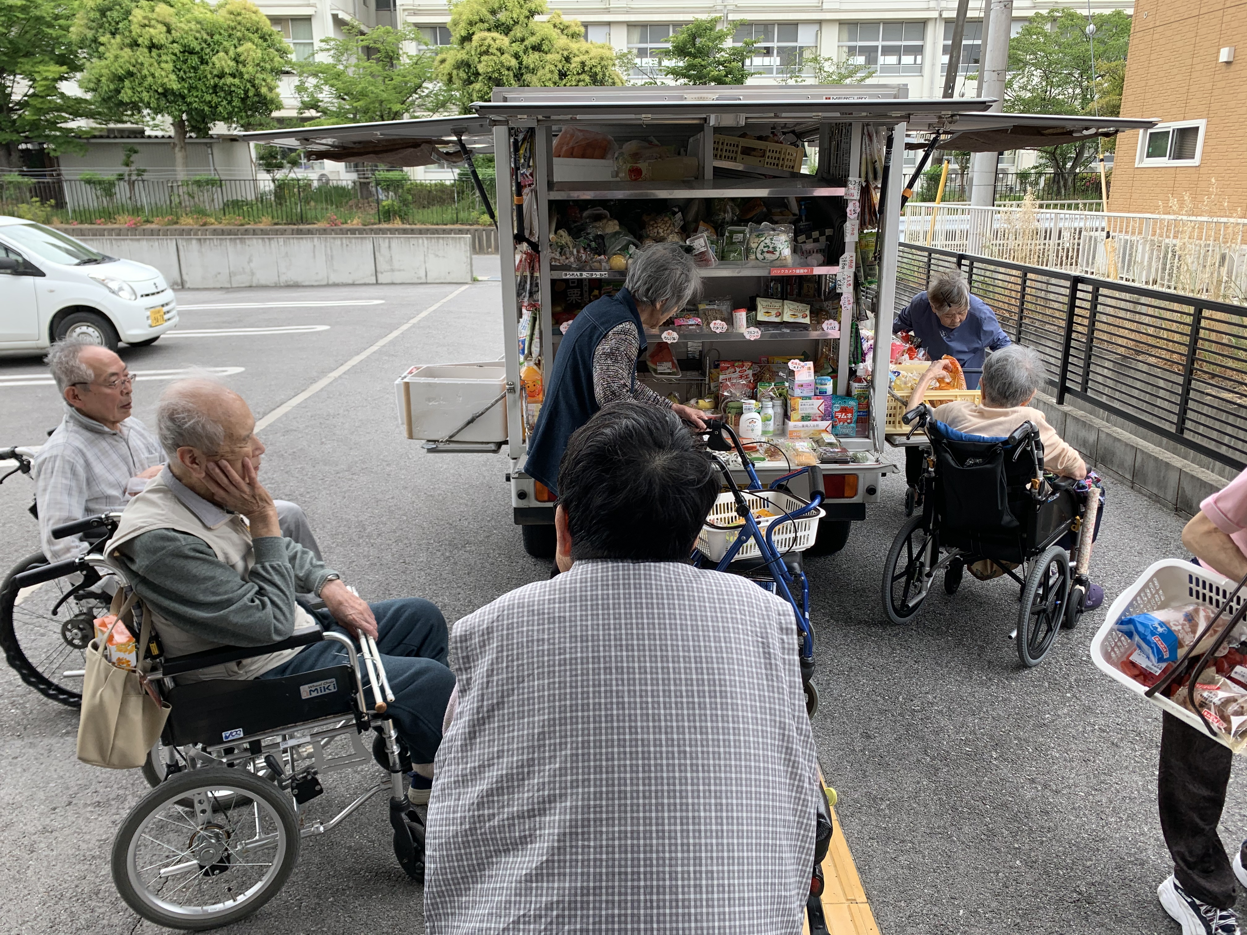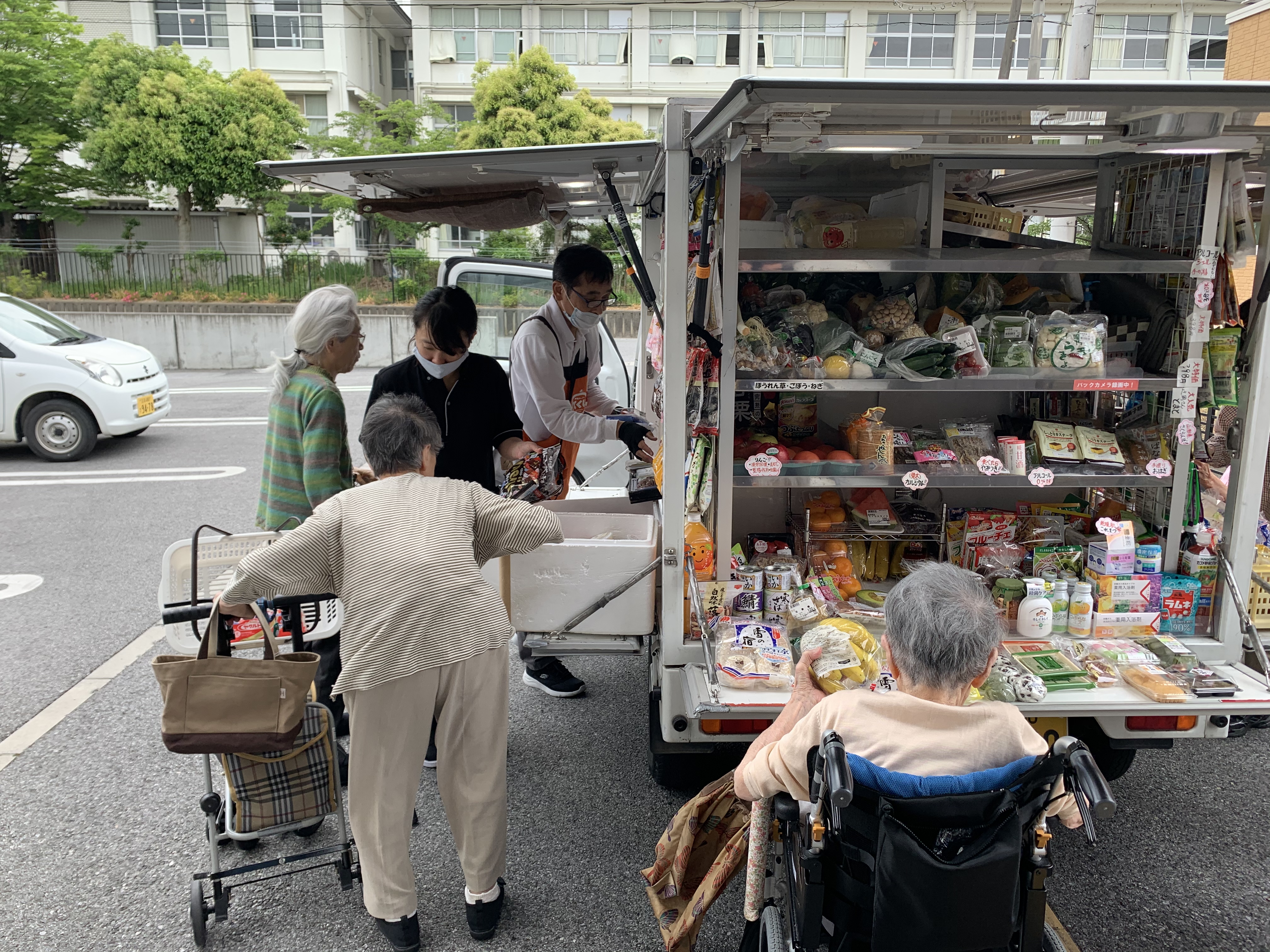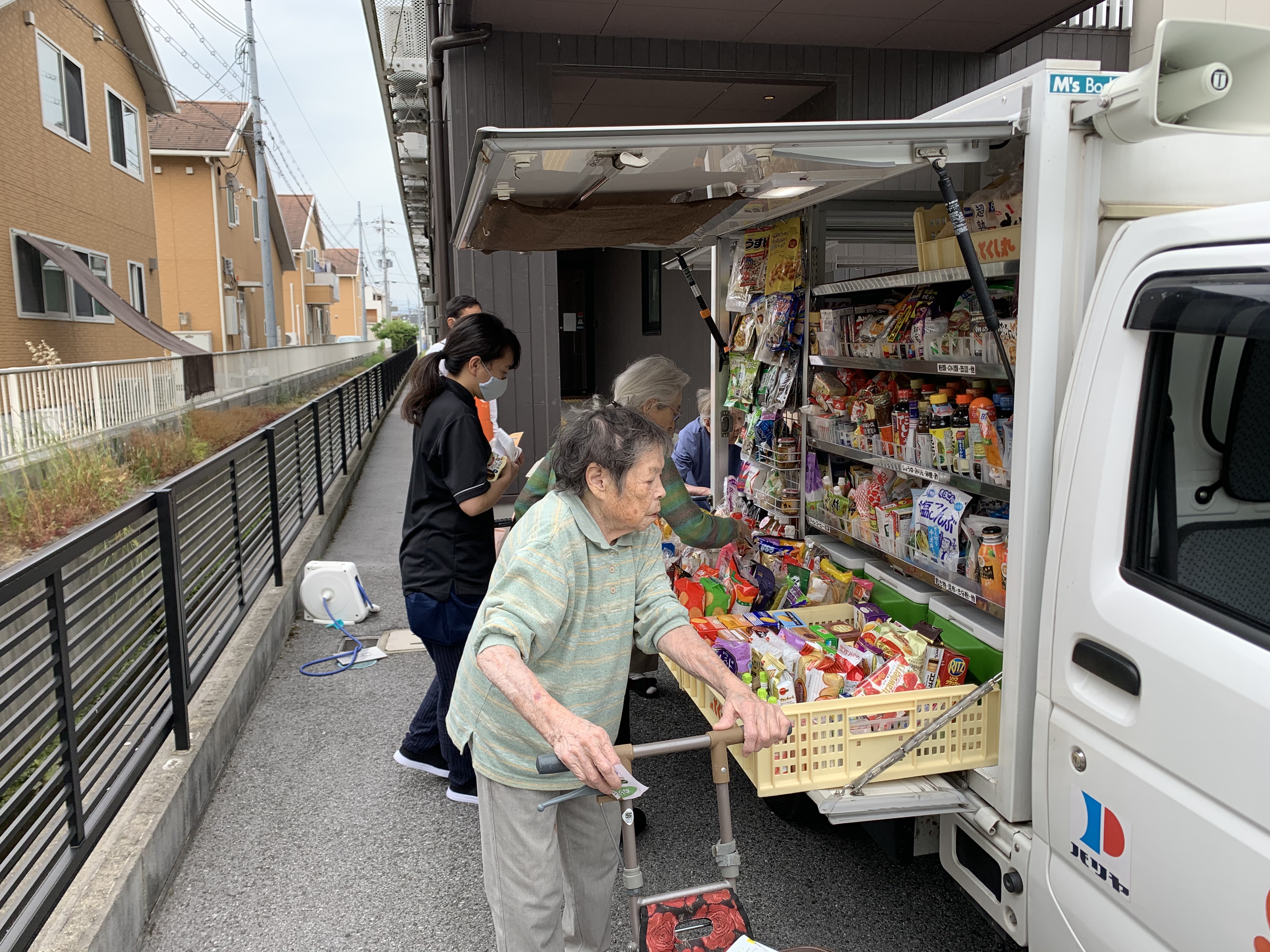 天気も良く玄関から移動スーパーとくし丸の
