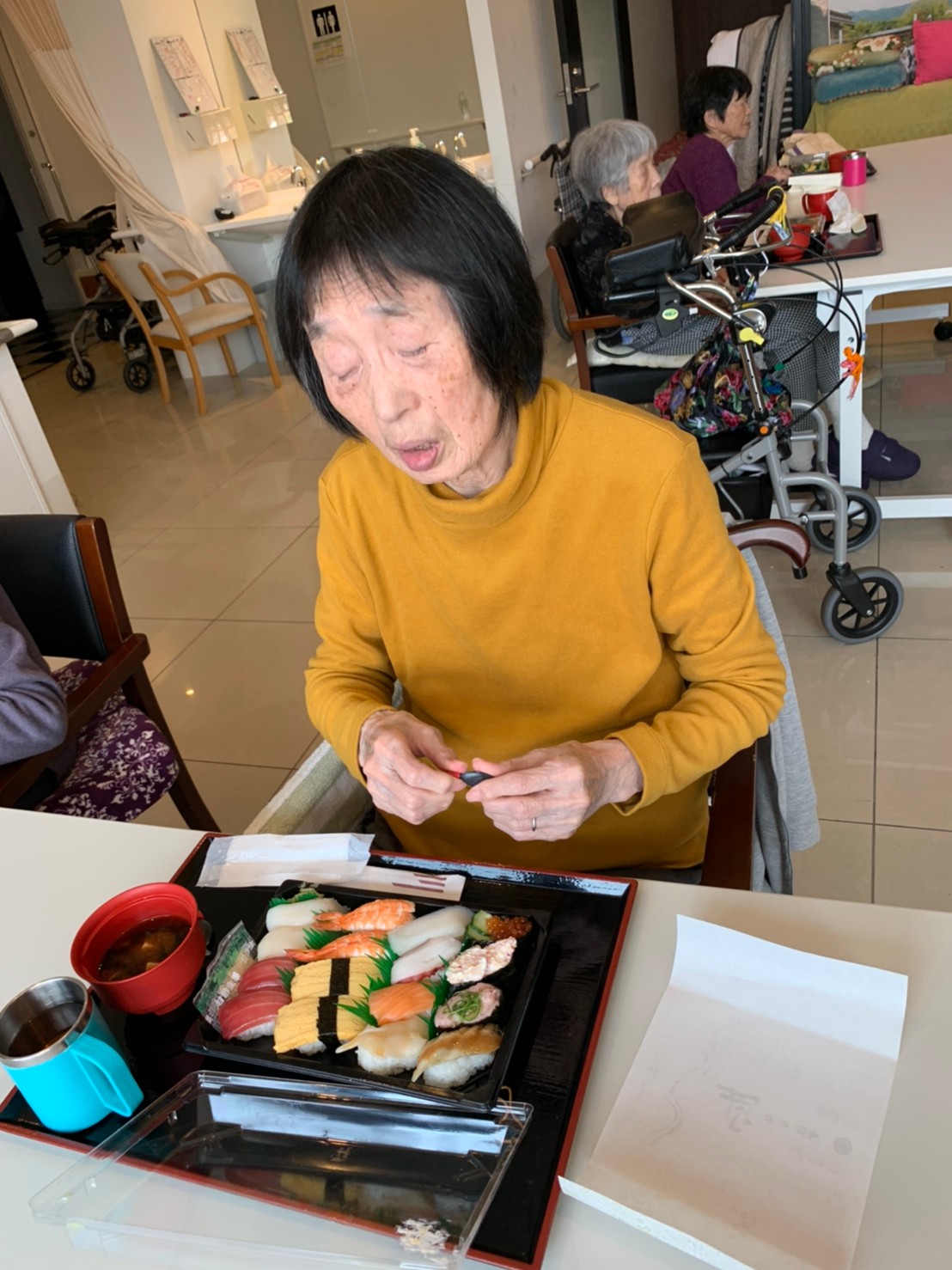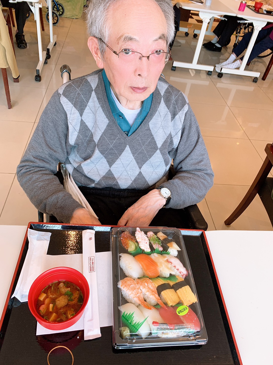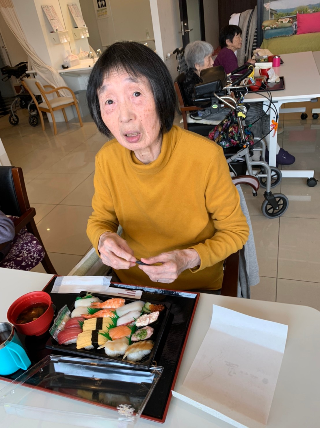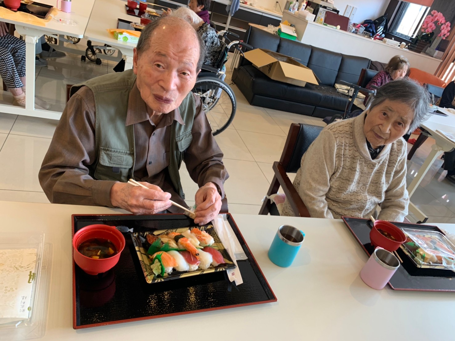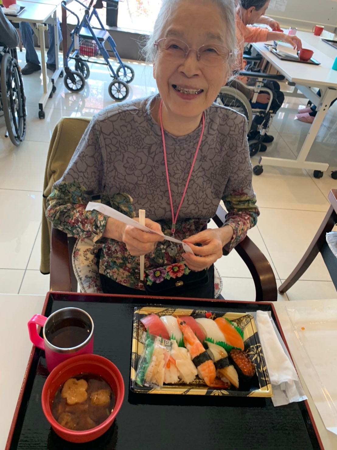 お寿司とともに笑顔満開のデイサービスになりました。