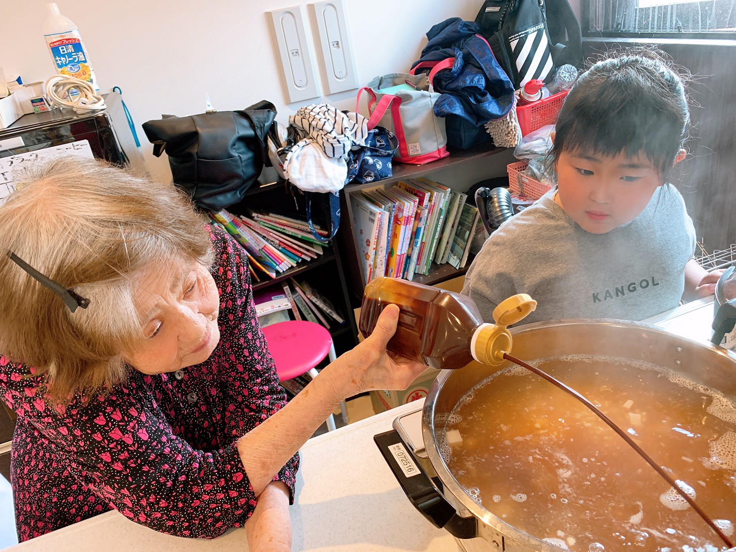 赤だし作り。かわいい助手にも来ていただきました。