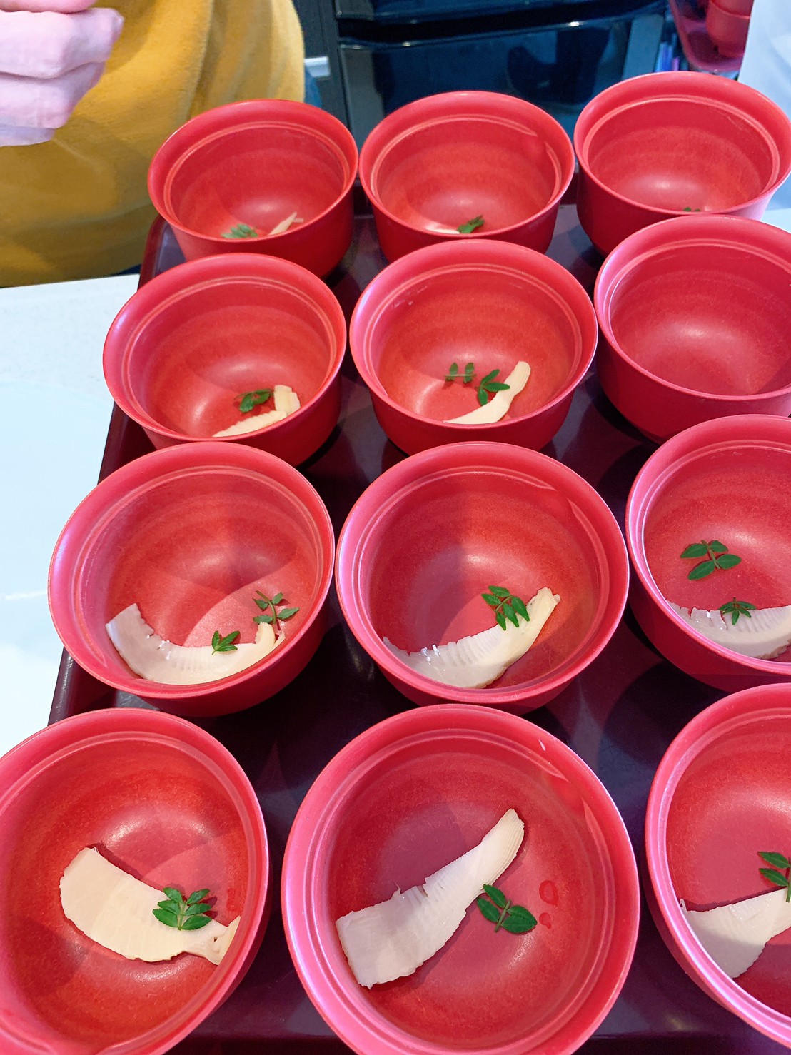 お椀に1枚ずつ盛り付けます。