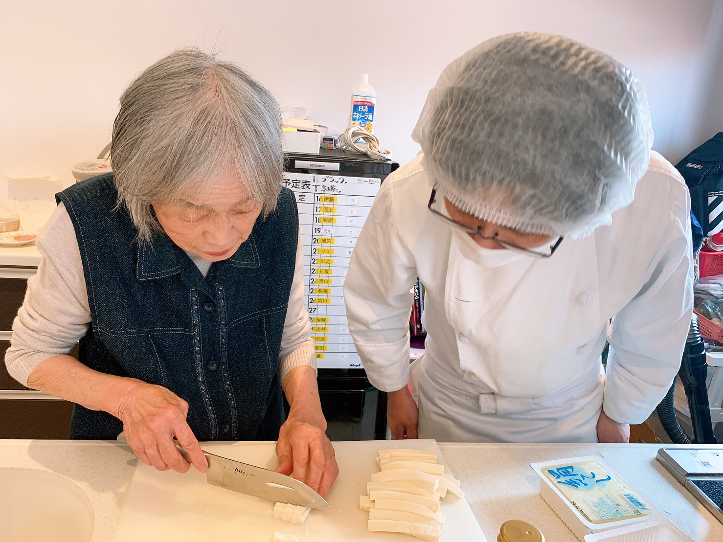 味見をしていただきました。長年包丁を握ってこられた