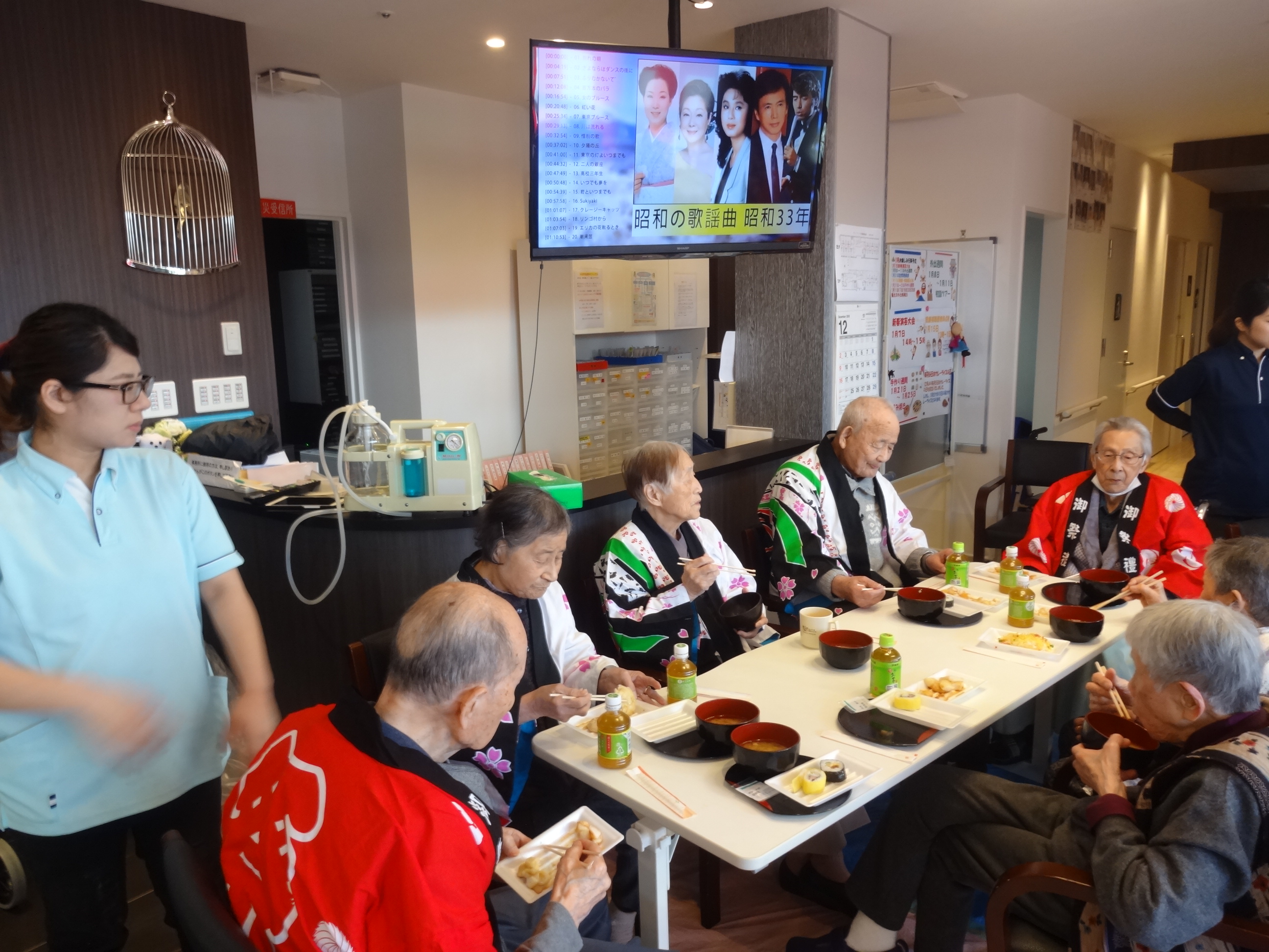 お昼ごはんはつきたてのお餅とお寿司にトン汁と年末にぴったりのお食事に、皆様とても喜ばれておられました 😀