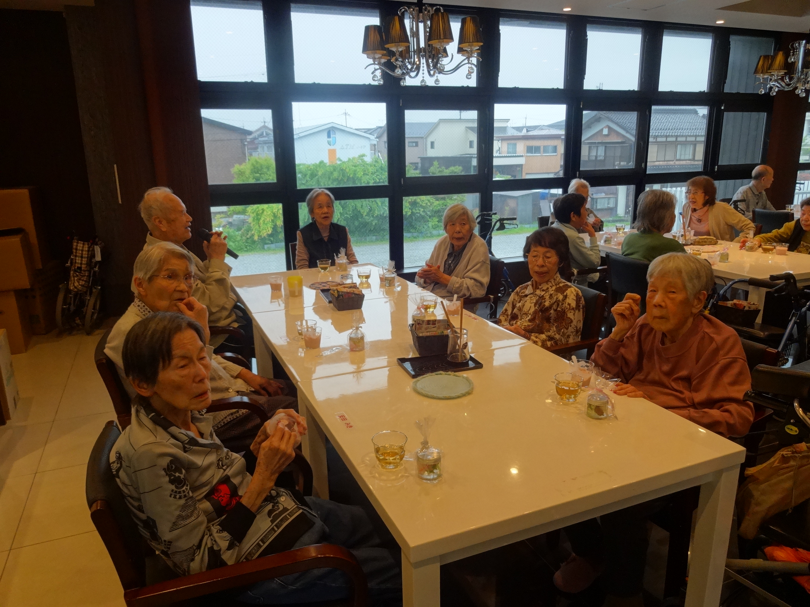 サニープレス河瀬では母の日イベントとして女性の方へのプレゼントと利用者様全員におかしを振舞いました 😛