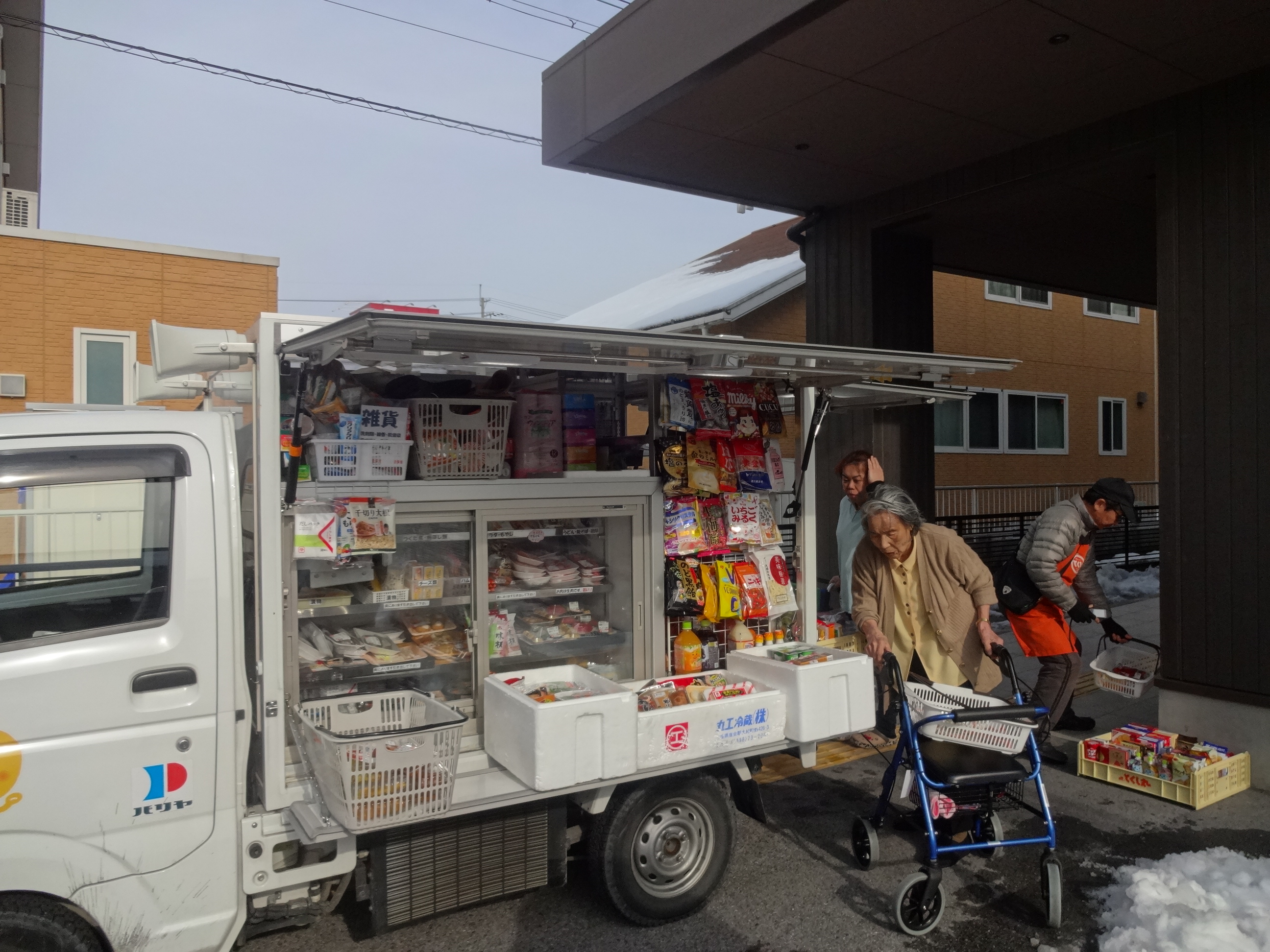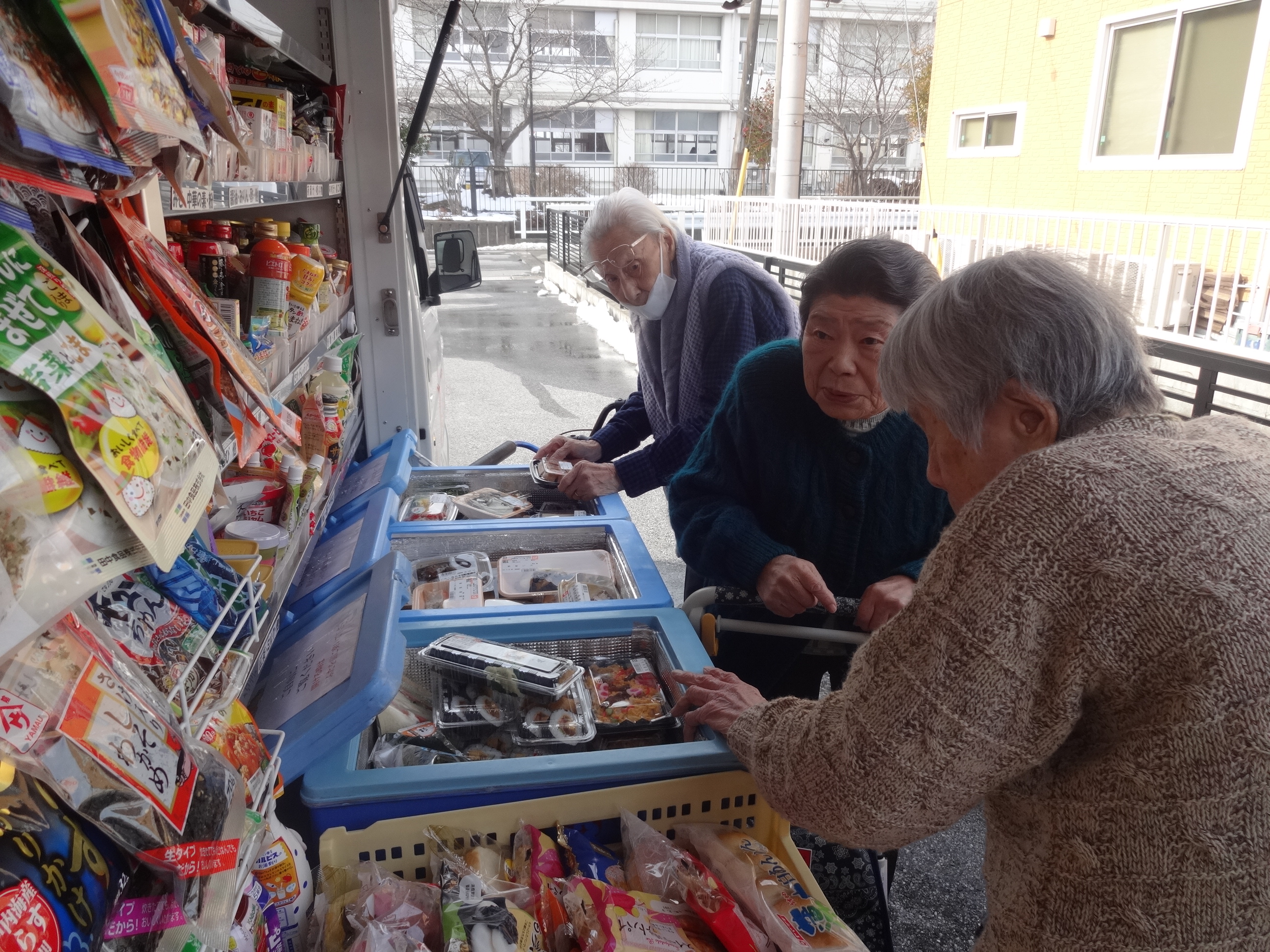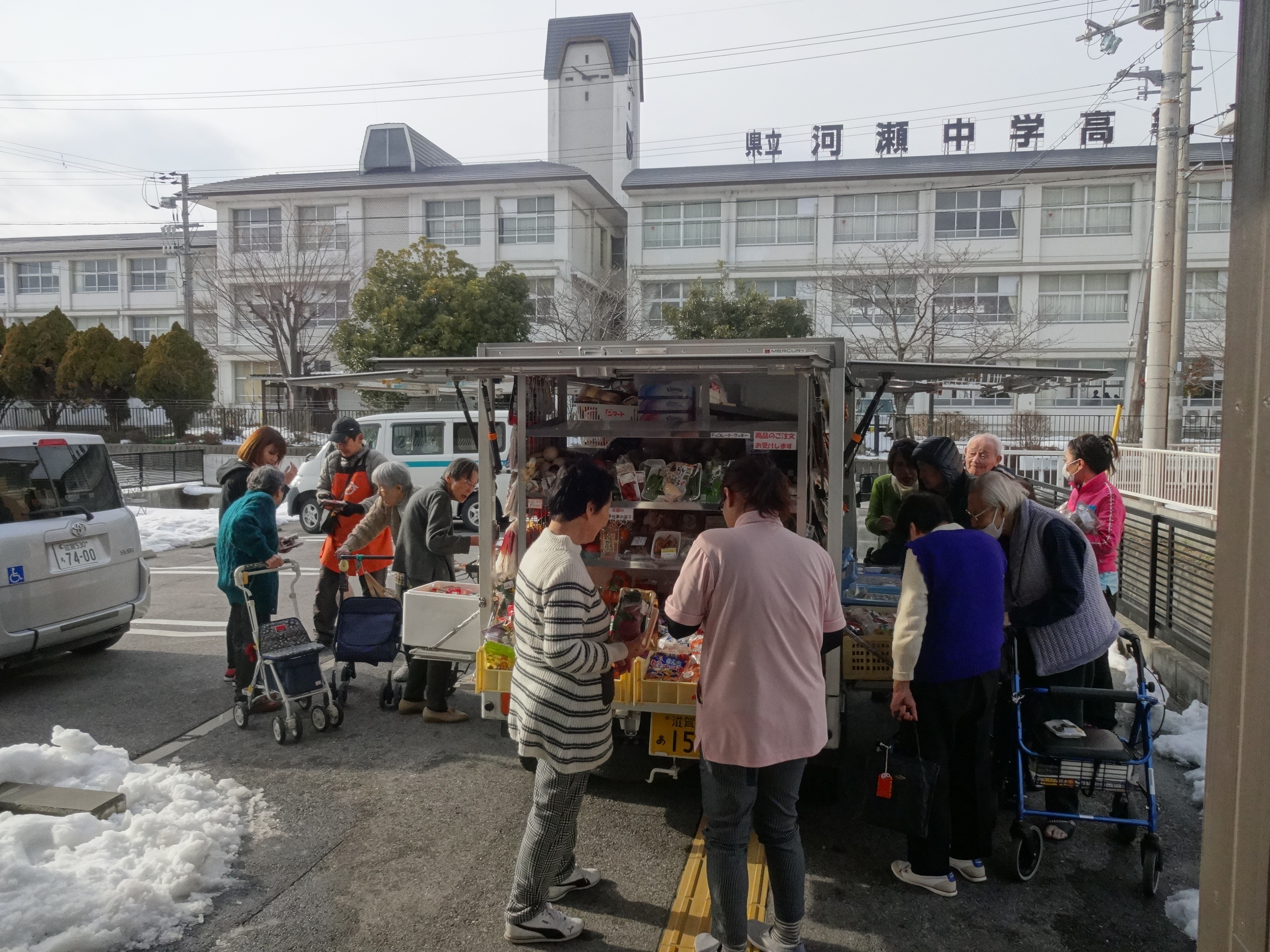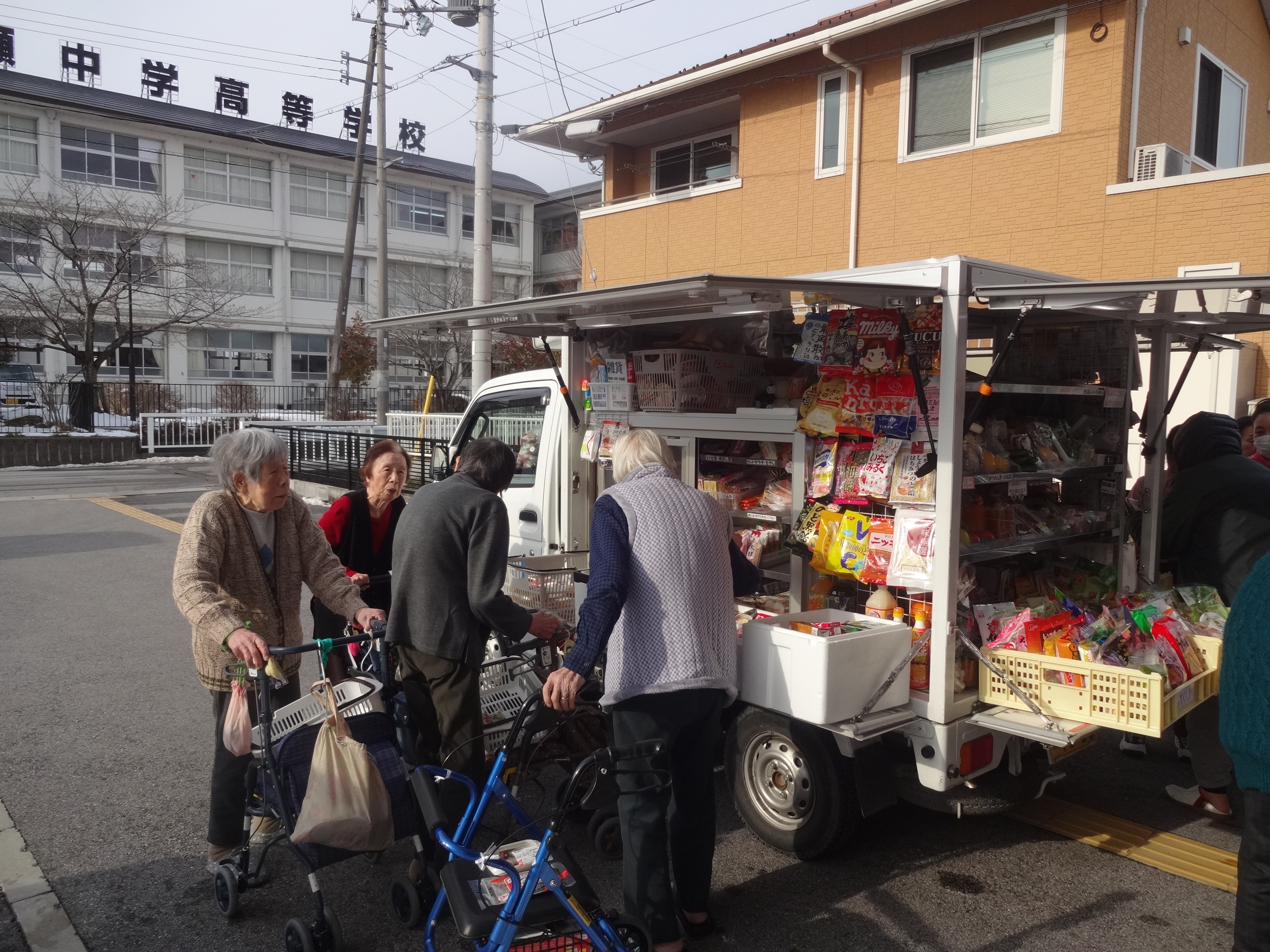 サニープレス河瀬では現在移動販売スーパーが週1~2回お越しになって頂いております。