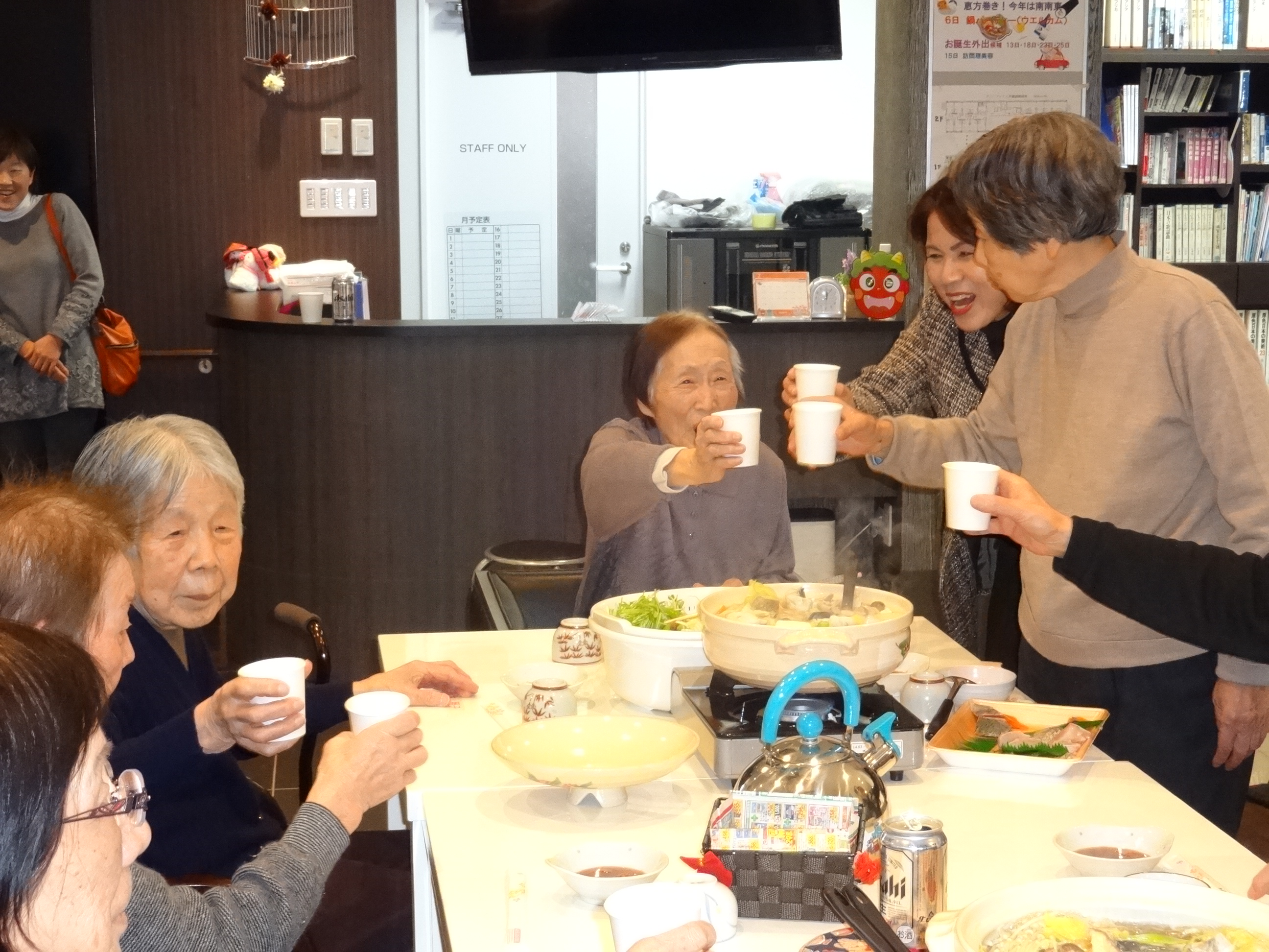 新しい仲間とお鍋を囲みつつ、飲めや騒げやの大盛り上がりでした。