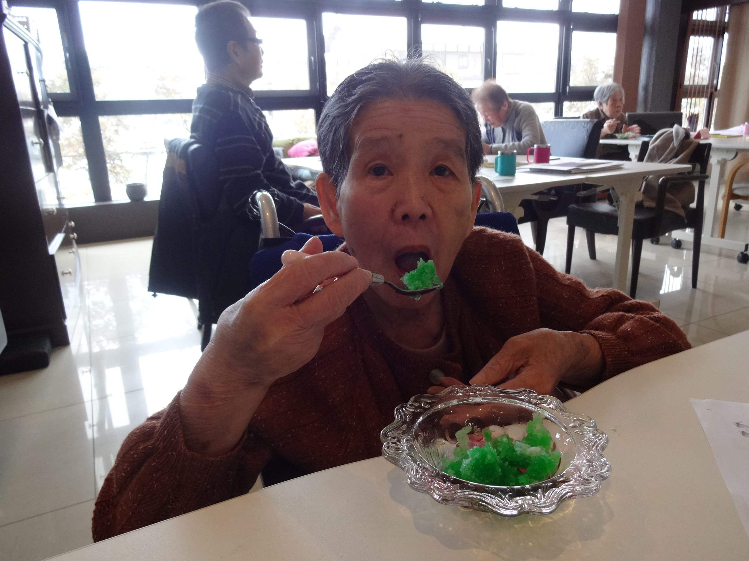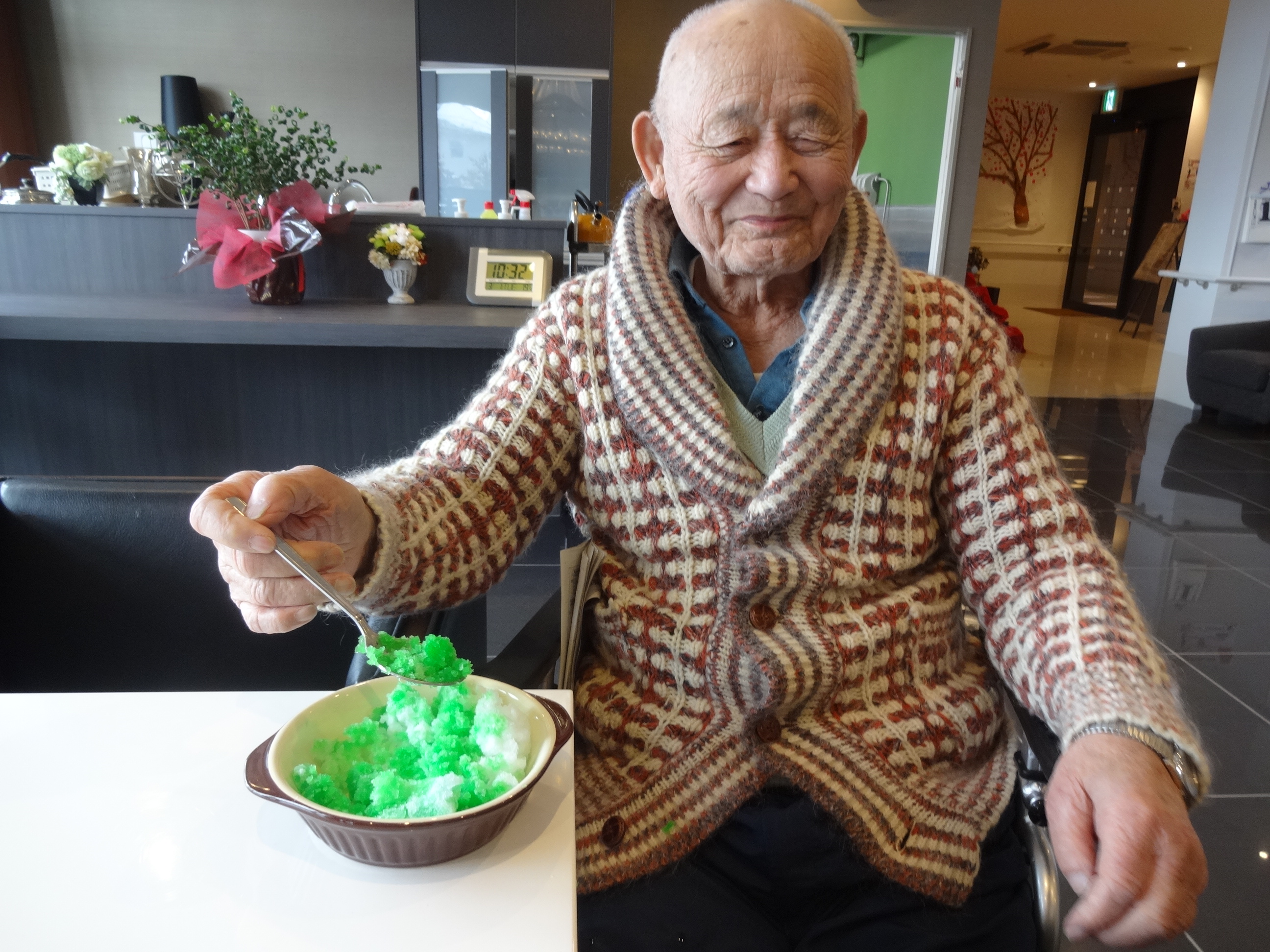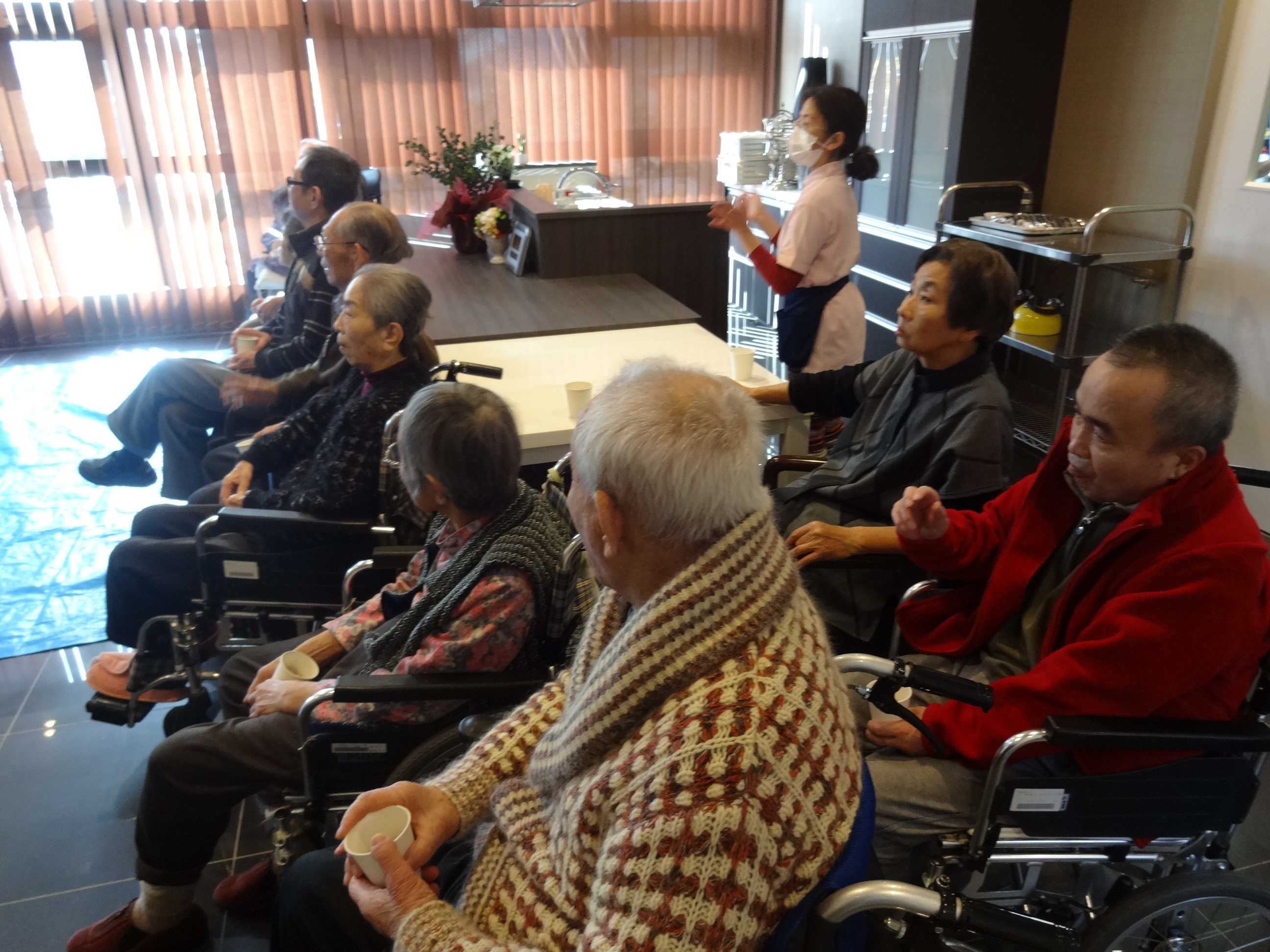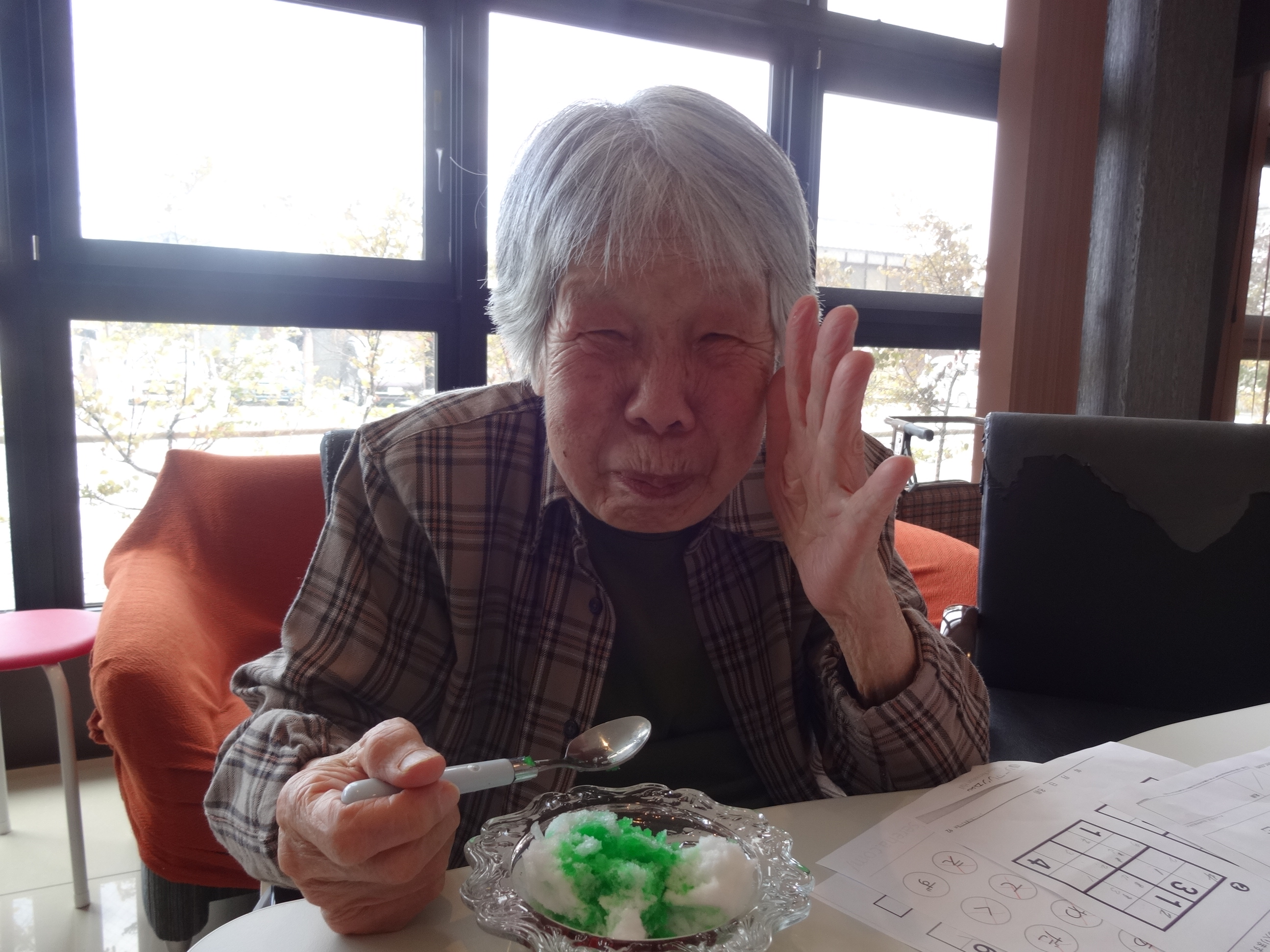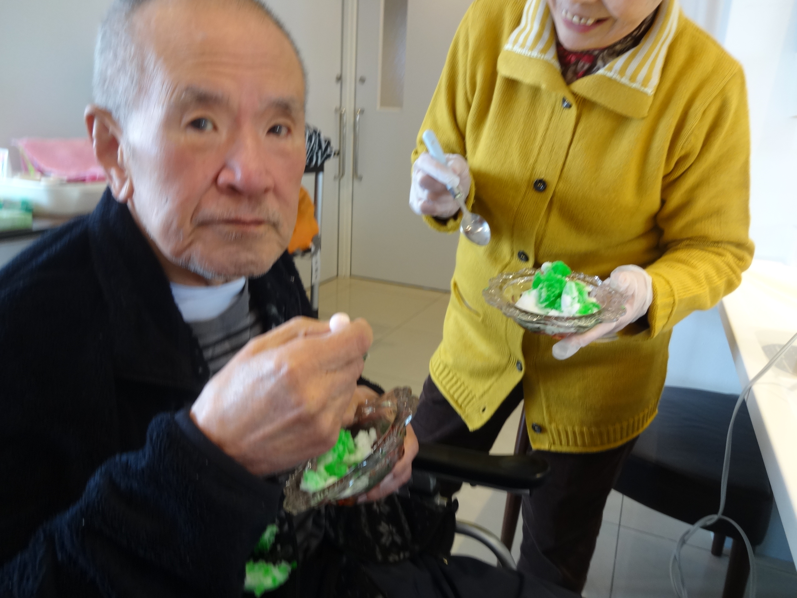 利用者が外を見られて、一言「そういえば昔は、雪食べてたよな…..」