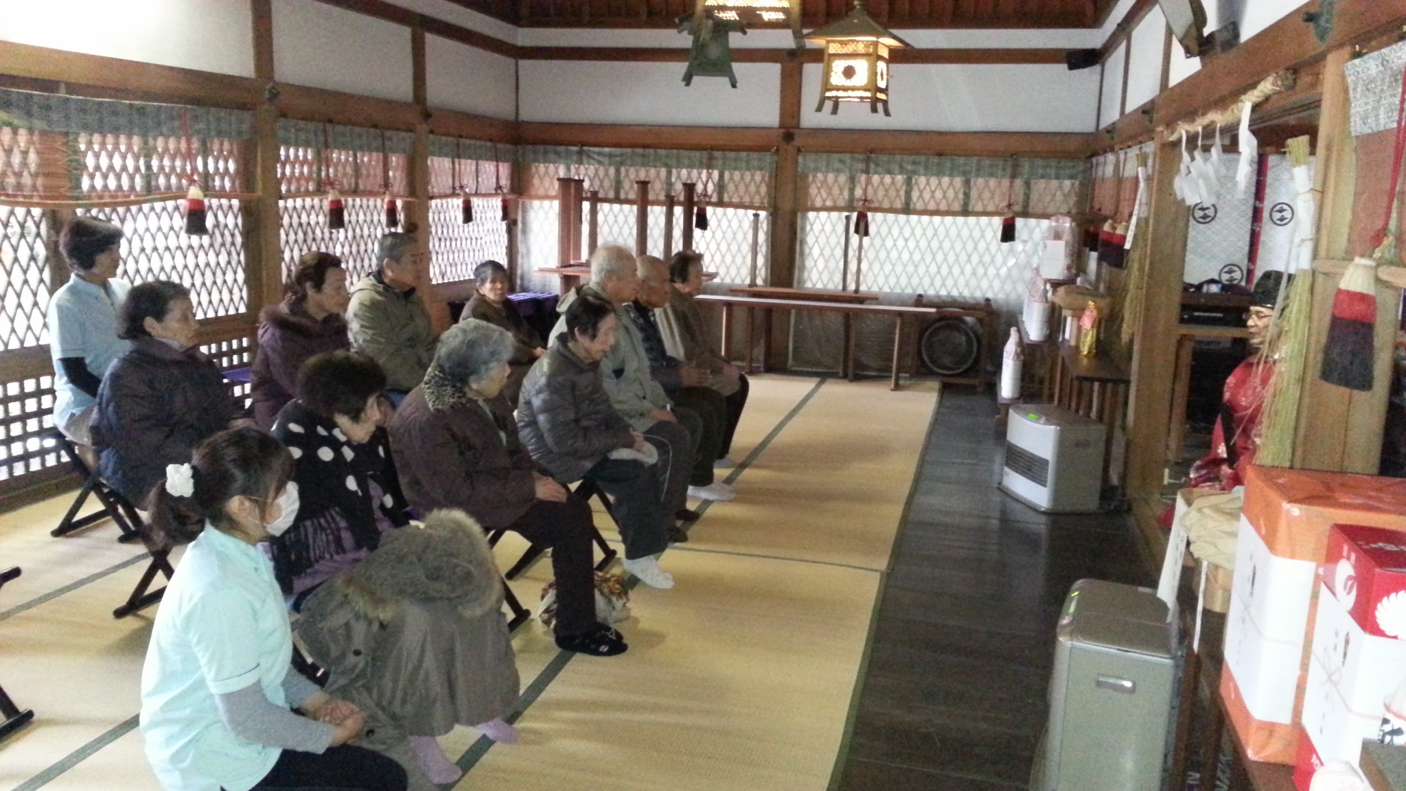足腰の元気な方々は、中で祝詞をあげていただきました。