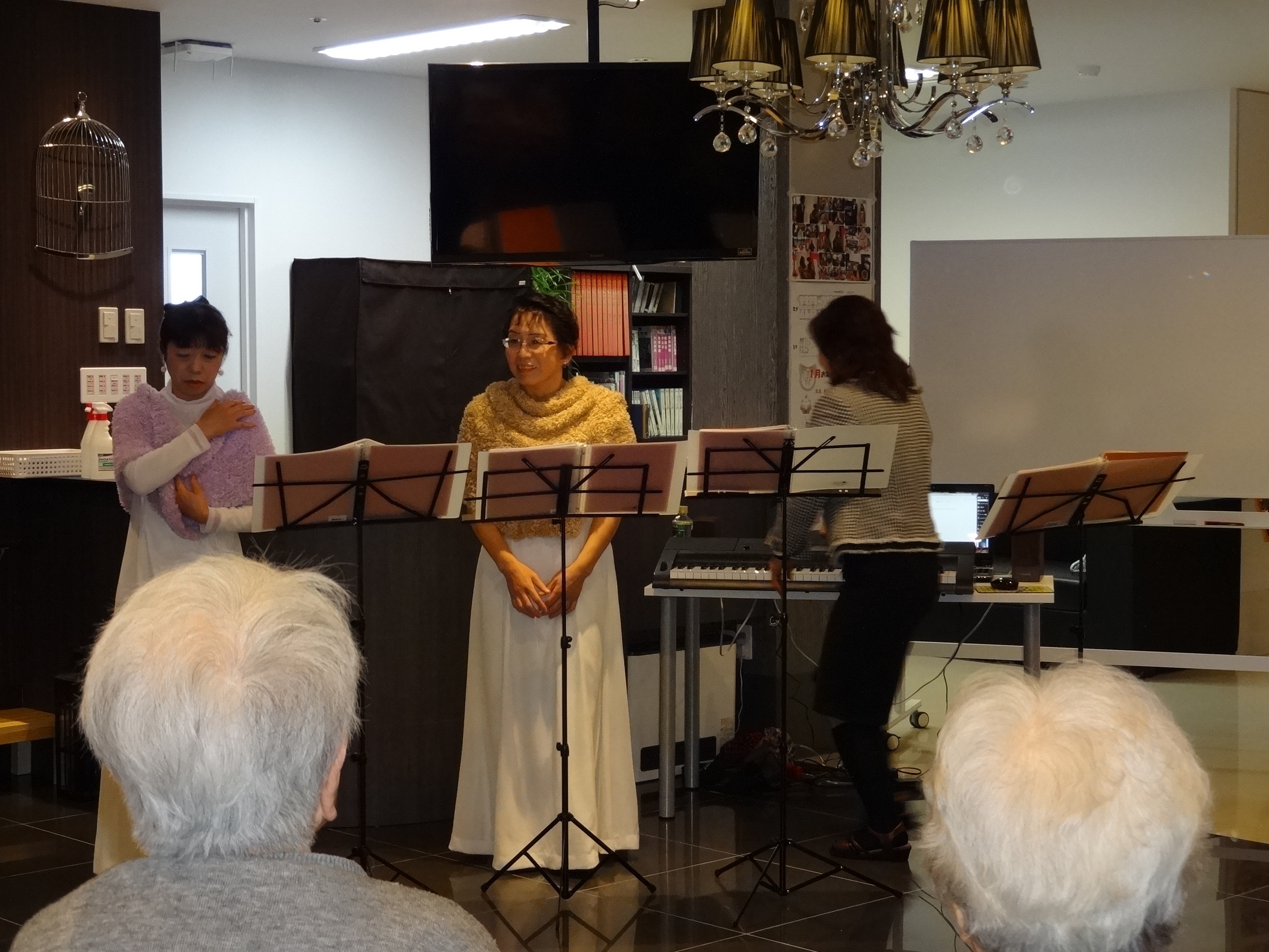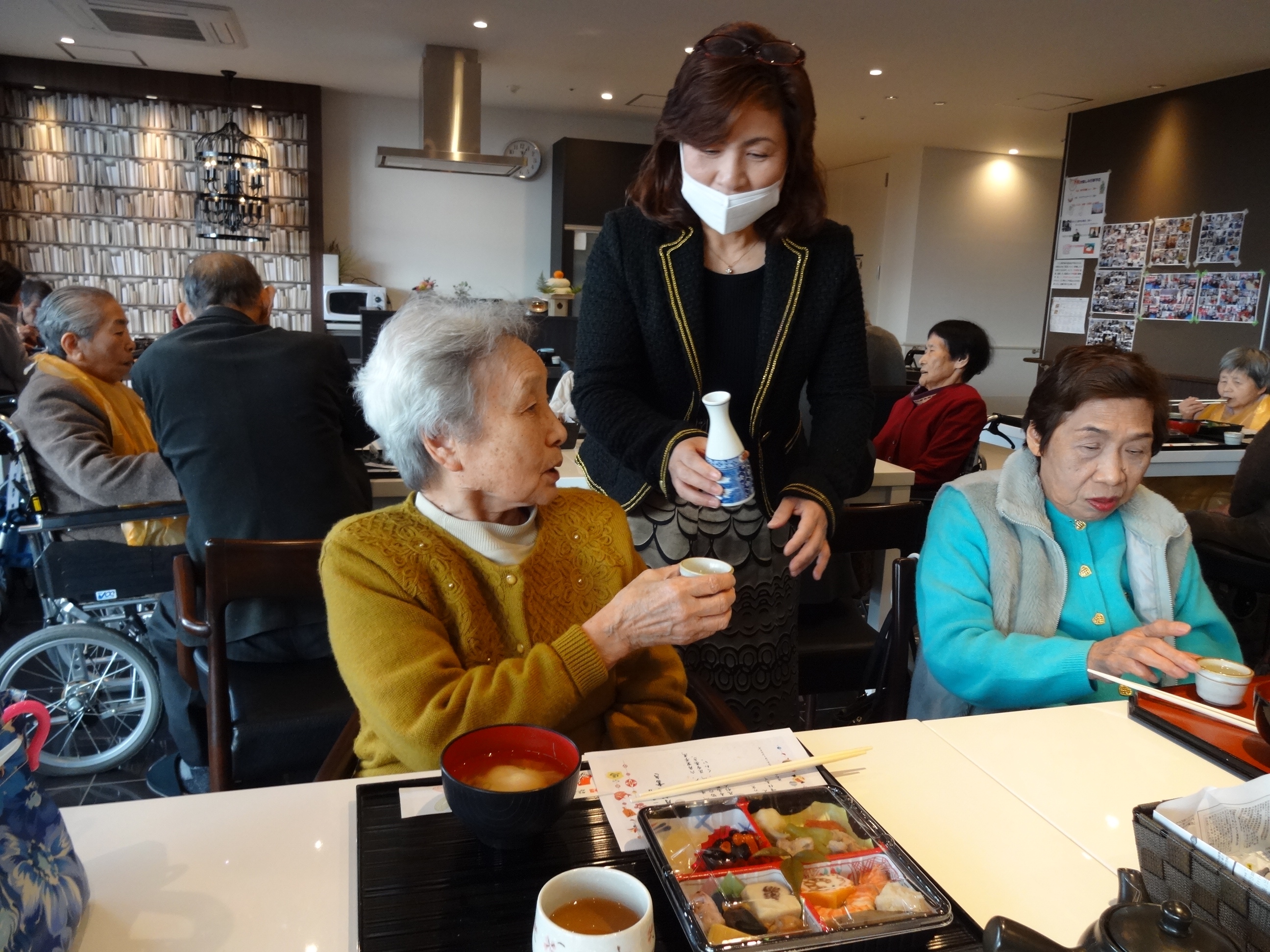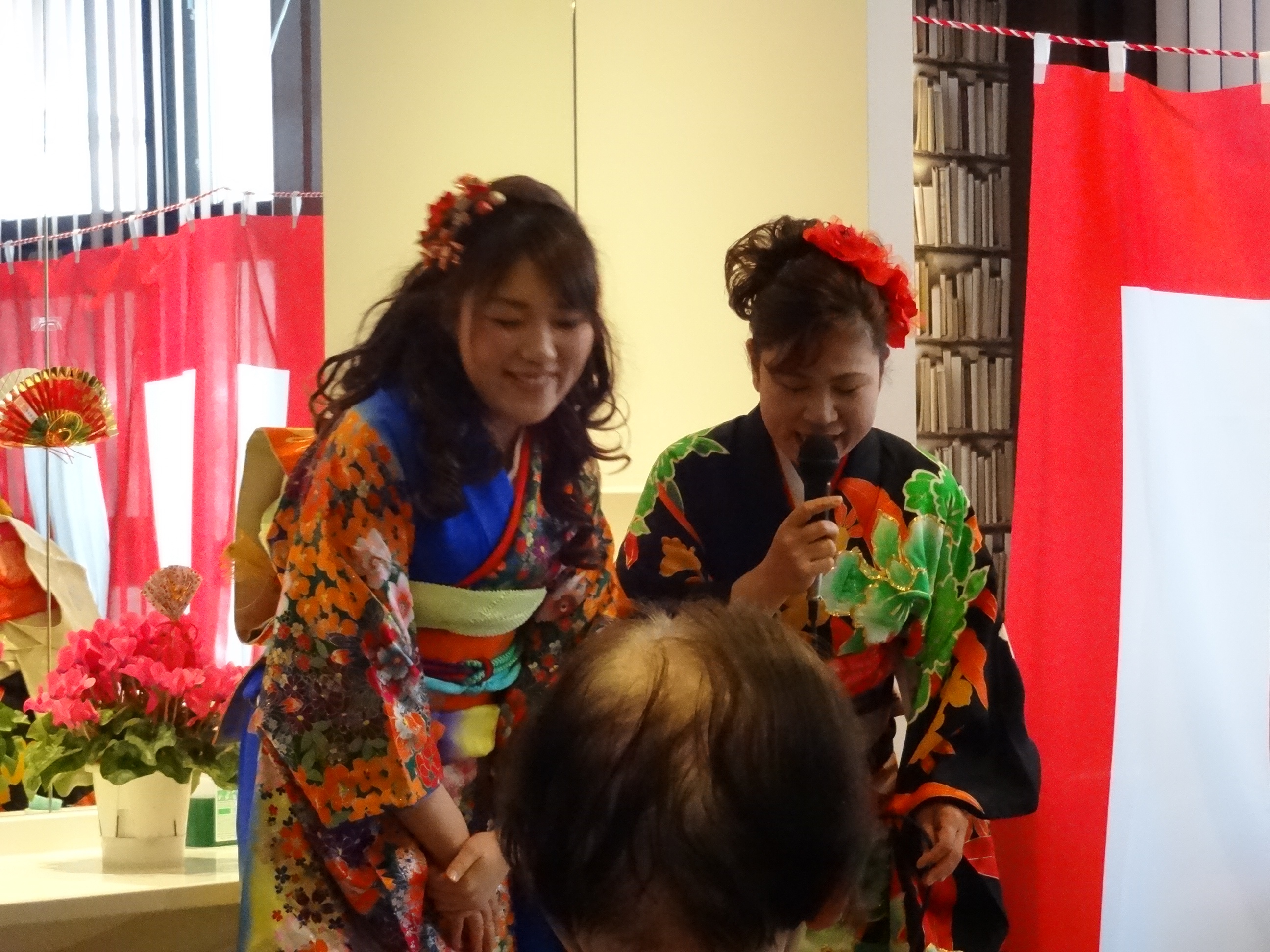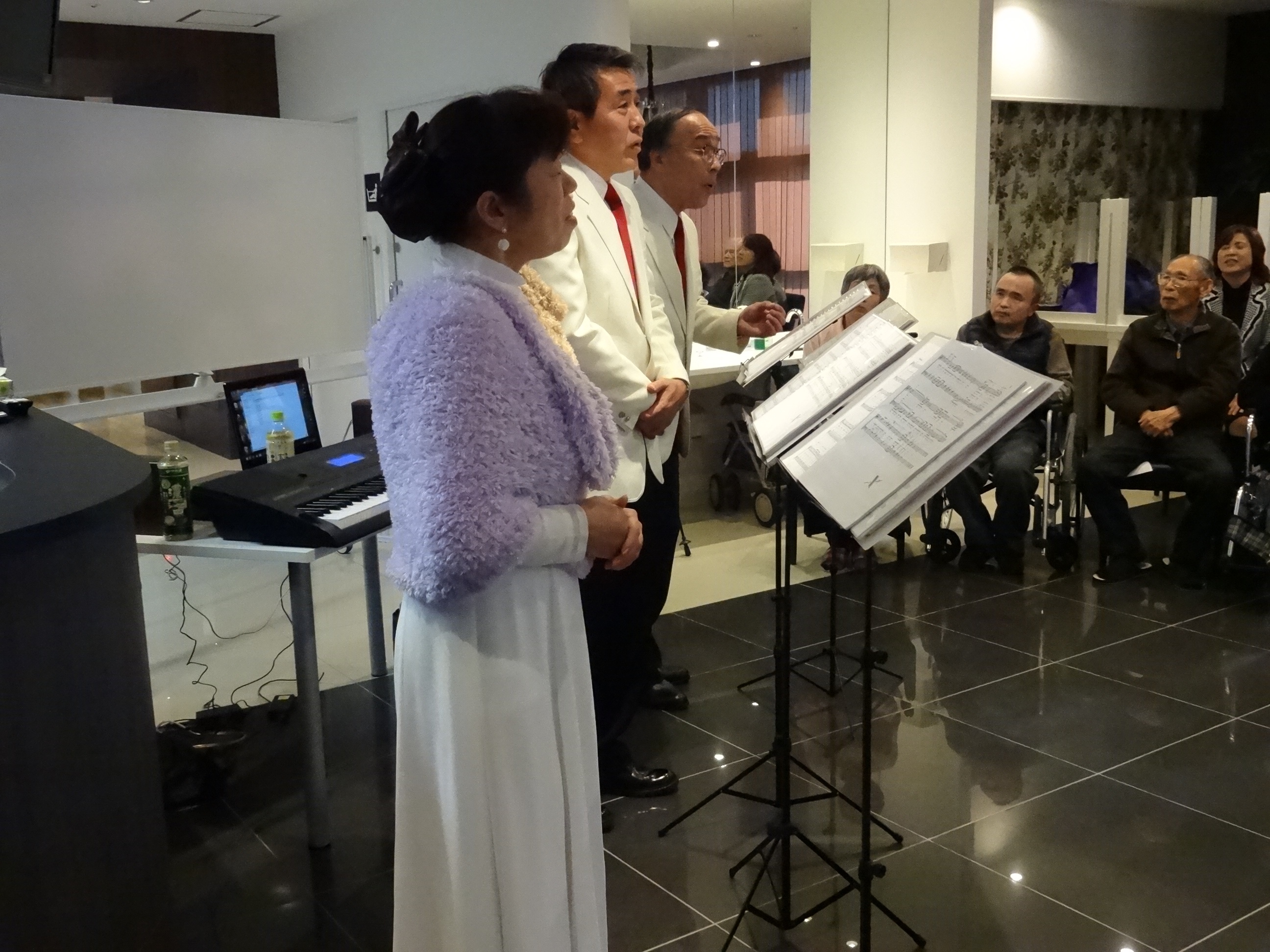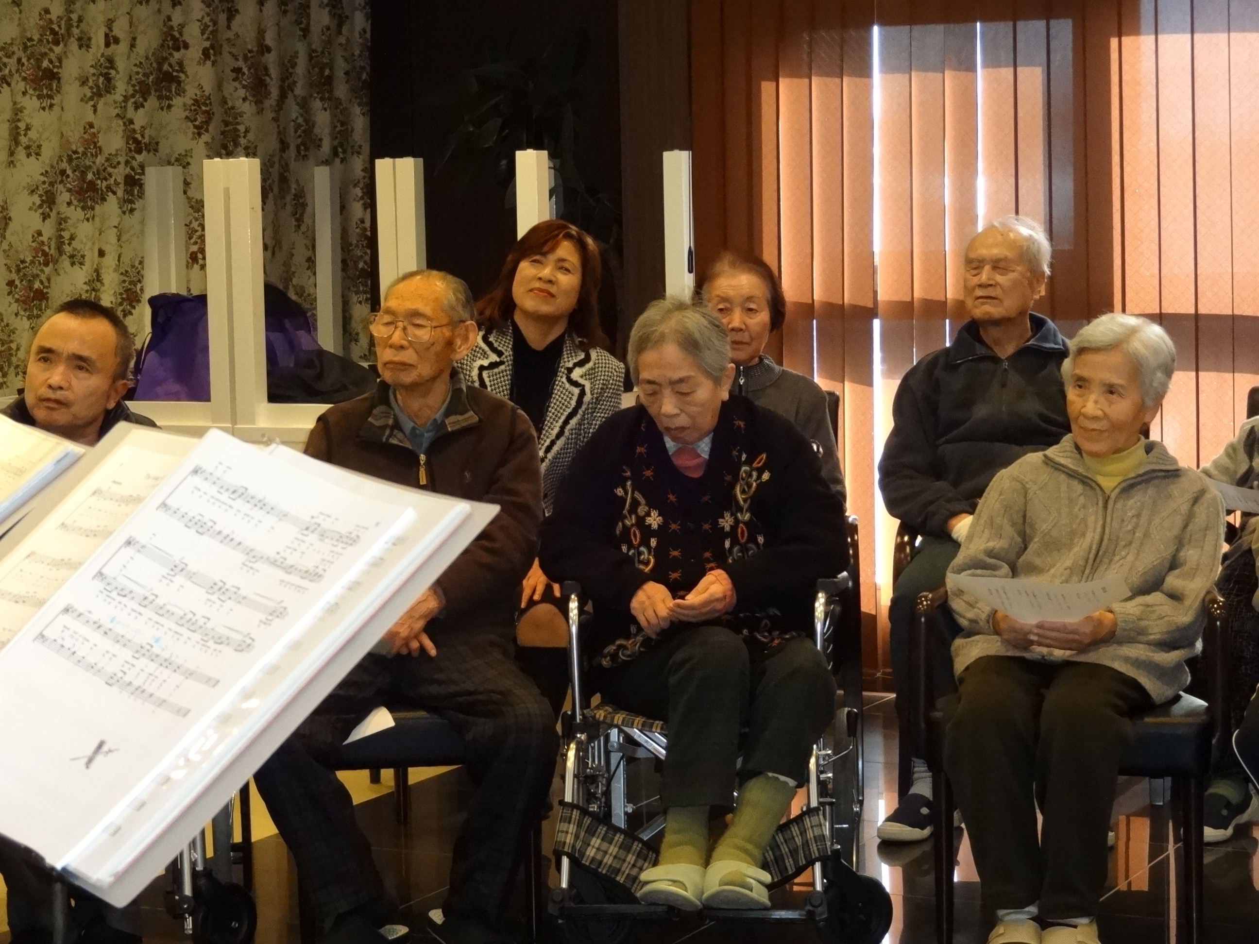 食事の後は、職員による「新春歌謡ショー」。入居者のみなさまの素敵な笑顔に包まれました。