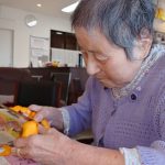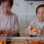 本日は職員がお持ちさせて頂きました柿を用いて干し柿作りをおこないました。昨年はカラスに攻撃されてしまいましたので今年は対策を立てておこないました。生き物の世界でも物不足の影響で食材確保も厳しくなっているのかもしれないです。