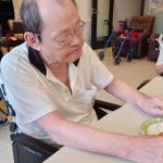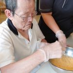 明日はサニープレイス河瀬でも特に大きなイベントである夏祭りです。毎年サニープレイス彦根と合同で開催させていただいていましたが今年も感染症対策のために合同での開催は中止させていただきました。例年であれば家人さまにもお越しいただき盛大に開催していましたが、今年も河瀬だけ、利用者さまだけの小規模ですが、例年に負けないように盛大に開催します。とまぁ、前置きが長くなりましたがお心優しい利用者さまにもお手伝いいただき明日の準備です。