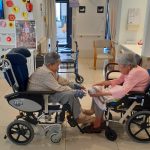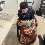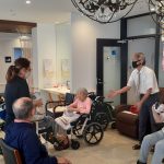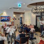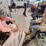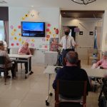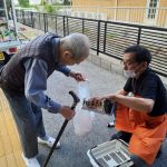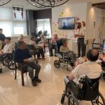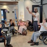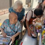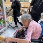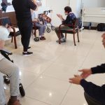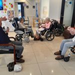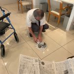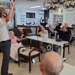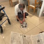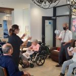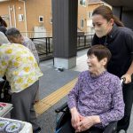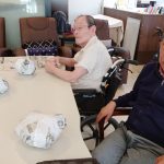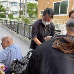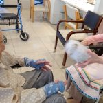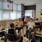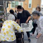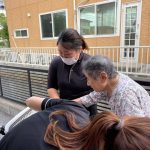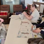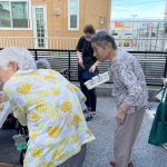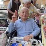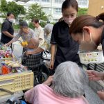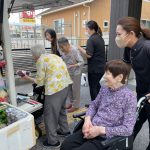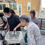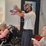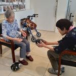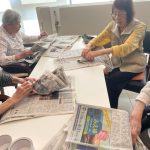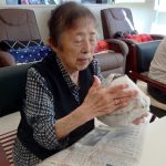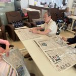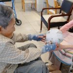 毎月恒例となった廣田先生のレクリエーションの日です。地域包括ケアシステムの構築とその強化に向けた取り組みの一環として、河瀬中学高校学校から廣田先生にお越しいただきデイサービスのレクリエーションをしていただきました。今日は新聞紙を丸めてボールにして体を動かすレクリエーションをして利用者さまに楽しんでいただきました。
