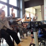 先月に続いて地域包括ケアシステムの構築とその強化に向けた取り組みの一環として、河瀬高校から先生にお越しいただきデイサービスのレクリエーションをしていただきました。先月は体をつかったレクリエーションでしたが、今月は歌を取り入れた頭の体操です。利用者さまを2つのチームに分けて別々の歌を歌っていただきます。相手チームにつられないように競争しました。また来月のレクリエーションを楽しみにしています。