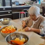 明日はカレーの日です。毎月恒例となったカレーの日の前日のデイサービスではレクリエーションでは慣れた手つきで野菜がひと口サイズにカットされていきます。もうすでにお腹がすいてきました(^^💦ぐぅ~w