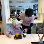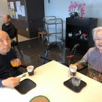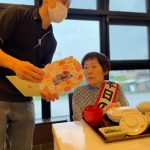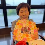 本日は2重のお喜びがありました。まずは利用者さまがお誕生日をお迎えられたことです。サニープレイス河瀬ではお誕生日にはスタッフ手作りの色紙のプレゼントをしています。そしてもう一つは本日にご入居された方が30年来のご友人でかつ何年かぶりの再会だったことです。〇〇ちゃんと呼び合う仲で友人からのお誕生日おめでとうが一番のプレゼントになりました。