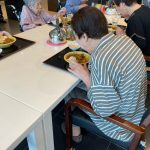 今日からご入居される利用者をお迎えしてカレーパーティーです。たまたまですが利用者さまと初めてお話しして実は私と不思議な縁があることがわかりました。遠く離れた生まれ育った故郷が一緒なだけではなく、幼馴染のお母さんの面倒を見てきたと聞いてびっくりしました。こんな偶然があるんだって驚いていたら、なんと、ほかの利用者さまとは30年来のお付き合いがあり数年ぶりの再会をされました。すごくご縁のある利用者さまがこれからもサニープレイス河瀬でたくさんのご縁に包まれてご生活をされるサポートをさせていただきます。