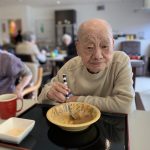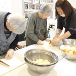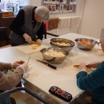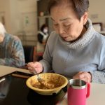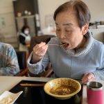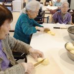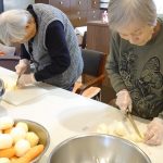明日のカレーの日に向けて、デイサービスではカレーハウスのように今月もカレーの下ごしらえです。長年主婦をされていた方々も今では月に数えるほどししか包丁を持たれることもなく、そのたまの家事を楽しまれているようです。