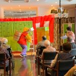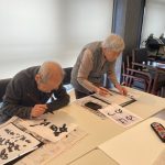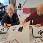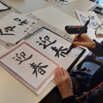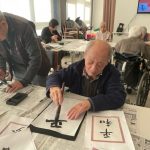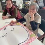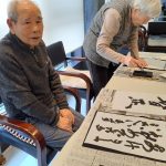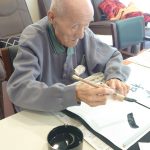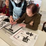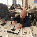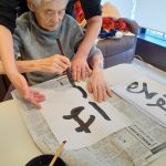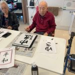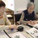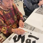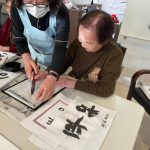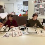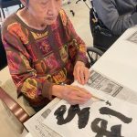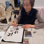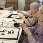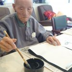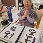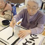 書初めも二日目を迎えました。書道に覚えのある方や、教えていた利用者さまは昔を思い出しながら書かれて、時には先生として筆の握り方からご指導くださっていました。