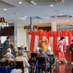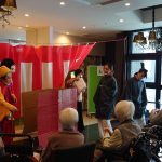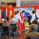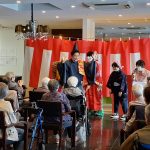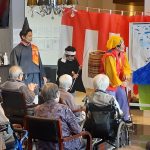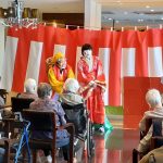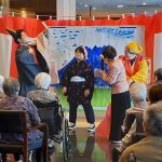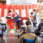 新春の恒例となった職員総出の演劇を今年もさせていただき、新年の初笑いとさせていただきました。昨年は浦島太郎でしたが今年も利用者さまがよくご存知の昔話のかぐや姫をモチーフに総合演出のO氏の重厚な台本のもと『Princess of Kaguya~月からの使者~』を演じさせてしただきました。私は今年はヒロインのカグヤを担当し、長台詞の見せ場以上に絵の具でおしろいした見た目で恐怖に包み込んでしまいました。最初こそ驚かれましたが、見慣れてくるとかわいく見えるものでご夫婦でのご入居される旦那さまには奥さまよりも綺麗とほめていただきました(笑)途中から気持ちよくなった爺やとかぐやのアドリブで司会件総合演出を困らせることもありましたが、大笑いをしていただき今年も大成功裡に終えることができ、年末の鬼の稽古の甲斐があったと胸をなでおろせました。また、今年の初夢はかぐや姫の練習だった私もようやくかぐや姫からのプレッシャーもなく床につけますw