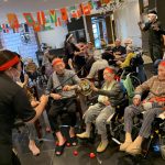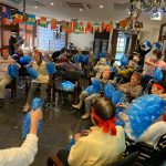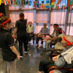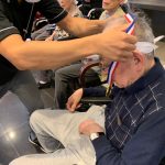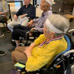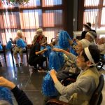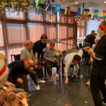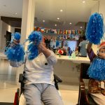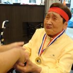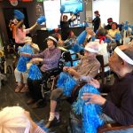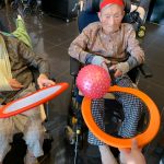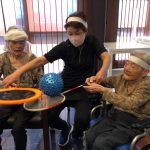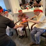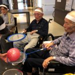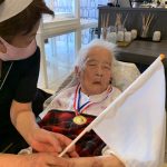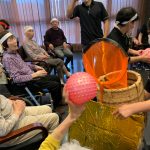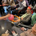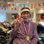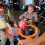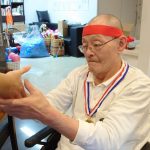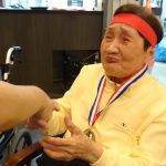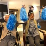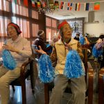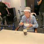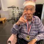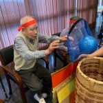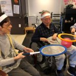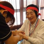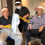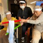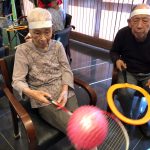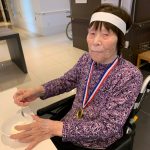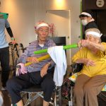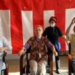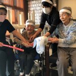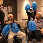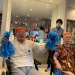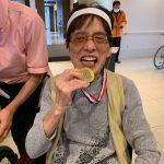 今日は月に1度のイベントの日で『ミニ運動会』を開催いたしました。選手宣誓から始まり、ラジオ体操でしっかり身体をほぐしてから競技開始です。今年のプログラムはタオルリレー、ボール渡しリレー、バスケットボール玉入れ、玉入れ、くす玉割り、ダンスとなっています。みなさまは紅白のチームに分かれて、主任を団長に競われますが、途中から職員の方が勝ち負けにこだわり始めたことはここだけのお話です(笑)そんな職員まで巻き込んで熱く暑く盛り上がったミニ運動会もフィナーレは恒例の琵琶湖周航の歌のポンポンダンスです。琵琶湖をイメージした青いポンポンも利用者さまと一緒に作らせていただきました。プログラムの最後は優勝チームの発表です。優勝した紅チームに金メダルの贈呈し、団結賞を受賞した白チームには副賞の金メダルの授与と皆さまの首には東京オリンピックにも負けない金メダルが輝いていますが、それ以上に輝いたのは利用者さまが楽しく競われた最高に笑顔だったのではないでしょうか?( *´艸`)