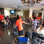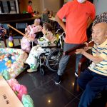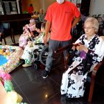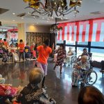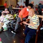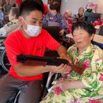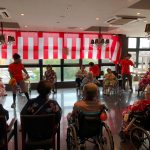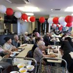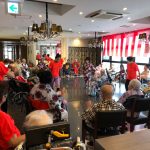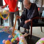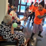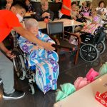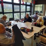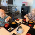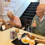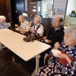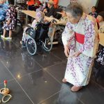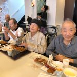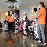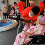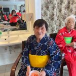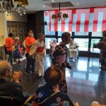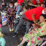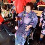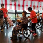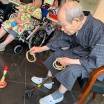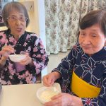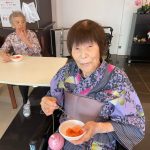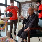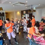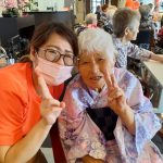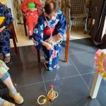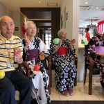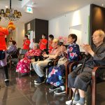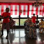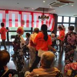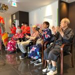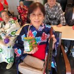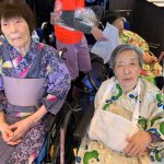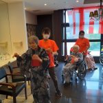 毎年恒例となりました夏祭りイベントを開催させていただきました。例年であればサニープレイス彦根と合同で利用者さまのご家族にも参加していただき、一番のビックイベントですが、コロナウィルスなどの感染症対策のため、昨年と同様に合同での開催は中止し、各施設ごとに行わせていただきました。午前中は出店の準備で、食事班のスタッフがやきそばから順に作っていき、施設内に香ばしいソースの香りに誘われて、お腹を空かせた利用者さまがひと足もふた足も早くから会場に詰めかけられました。その後、みなさまがお揃いになってから乾杯です。本日はアルコールも解禁され、お昼から職員の手作り出店ごはんをおかずにおいしいお酒に舌鼓をうたれました。お昼からは縁日です。縁日気分を高めるためにも、ご希望者に浴衣の着付けをさせていただき、射的やヨーヨー釣りをしていただき、景品狙って楽しまれ、最後は恒例の江州音頭です。この日のためにデイサービスでも練習され、お披露目です。囃子の音がすると自然と身体が動き出す元江州っ子たちでの盆踊りでフィナーレを飾りました(*’ω’*)
