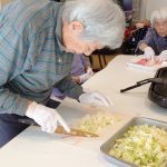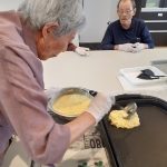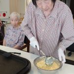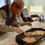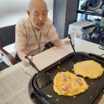 今日からデイサービスのレクレーションでは、二日にわたり手作りおやつの日としてお好み焼きを作って召し上がっていただきます。関西出身の利用者さま(特に大阪府の方)の慣れた手さばきに驚きながらのおやつタイムとなりました。お好み焼き県(広島)のおとなり岡山県ではおやつにお好み焼きは焼かないようです(´;ω;`)ウゥゥ