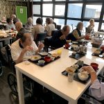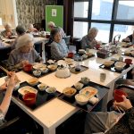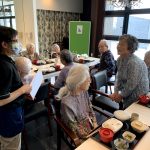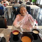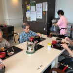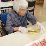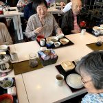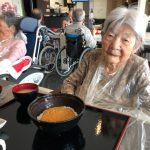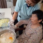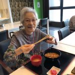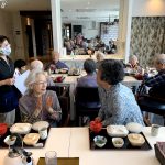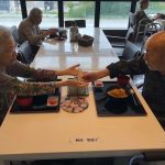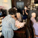 本日でご退去されご自宅に帰られる利用者さまの送別会をさせていただきました。お元気にご自宅にお帰りされることは喜ばしいことではありますが、ここで過ごされたくさんの思い出とご友人とお別れすることは寂しいものがあります。スタッフからは寄せ書きの色紙と今まで過ごされたきたすべての思い出のお写真をプレゼントさせていただきました。またご本人さまより皆さまへと彦根の銘菓をいただき、お昼ごはんにデザートがつき、いっきにご馳走に。また帰ってくるからねとご友人におっしゃって帰宅されていきました。最後の最後の日までお気遣いいただき本当にありがとうございます。これからもお元気にお過ごしくださいませ。