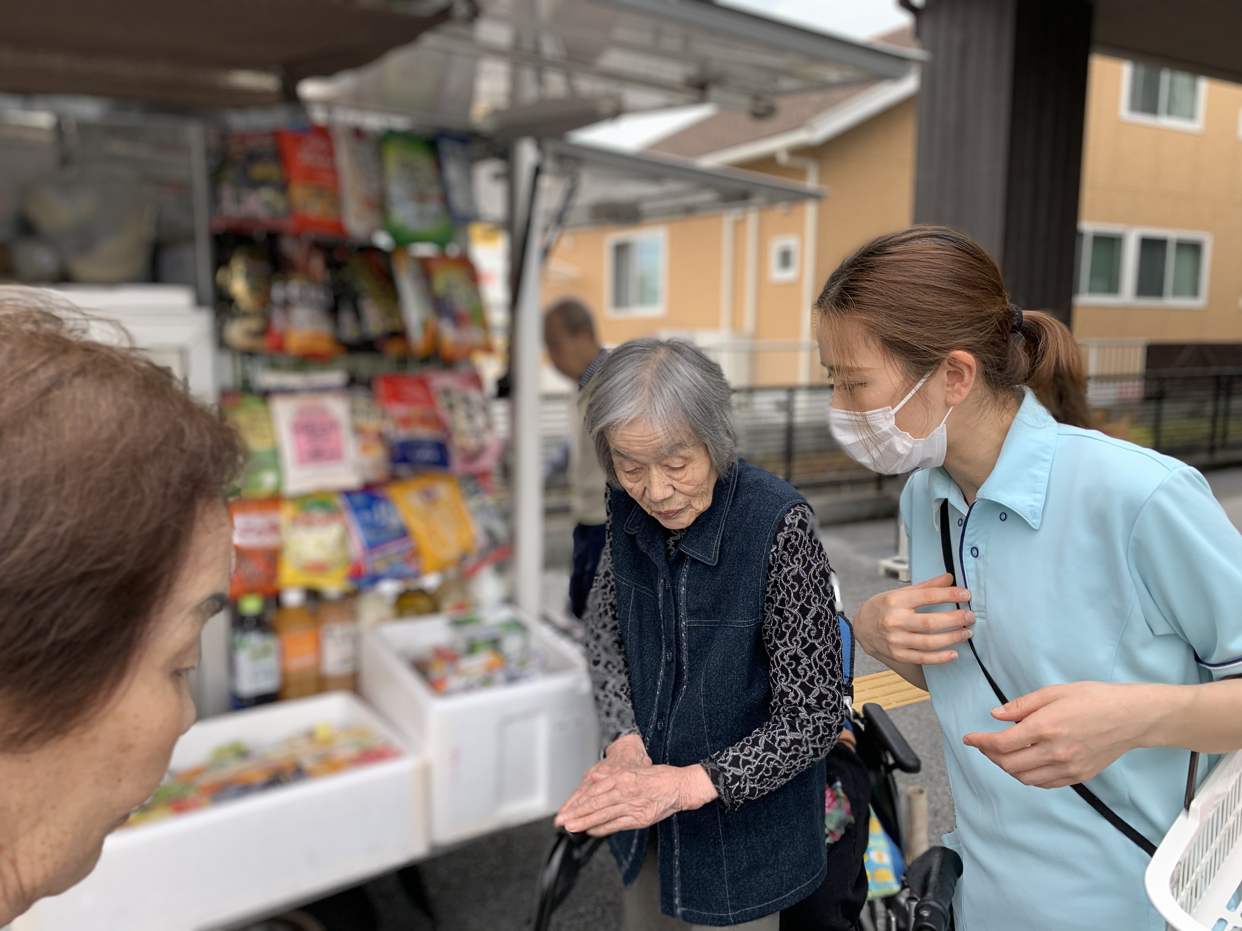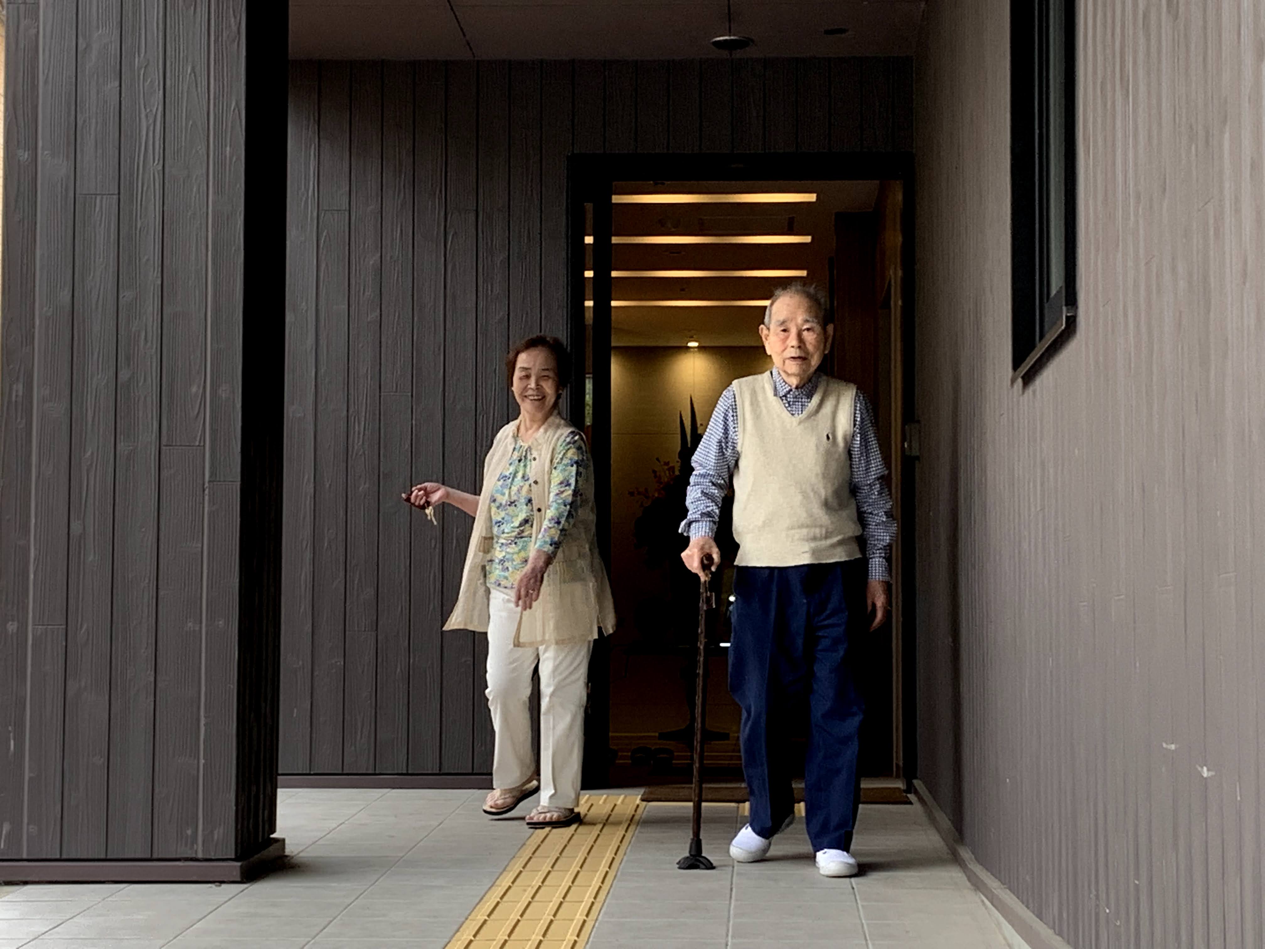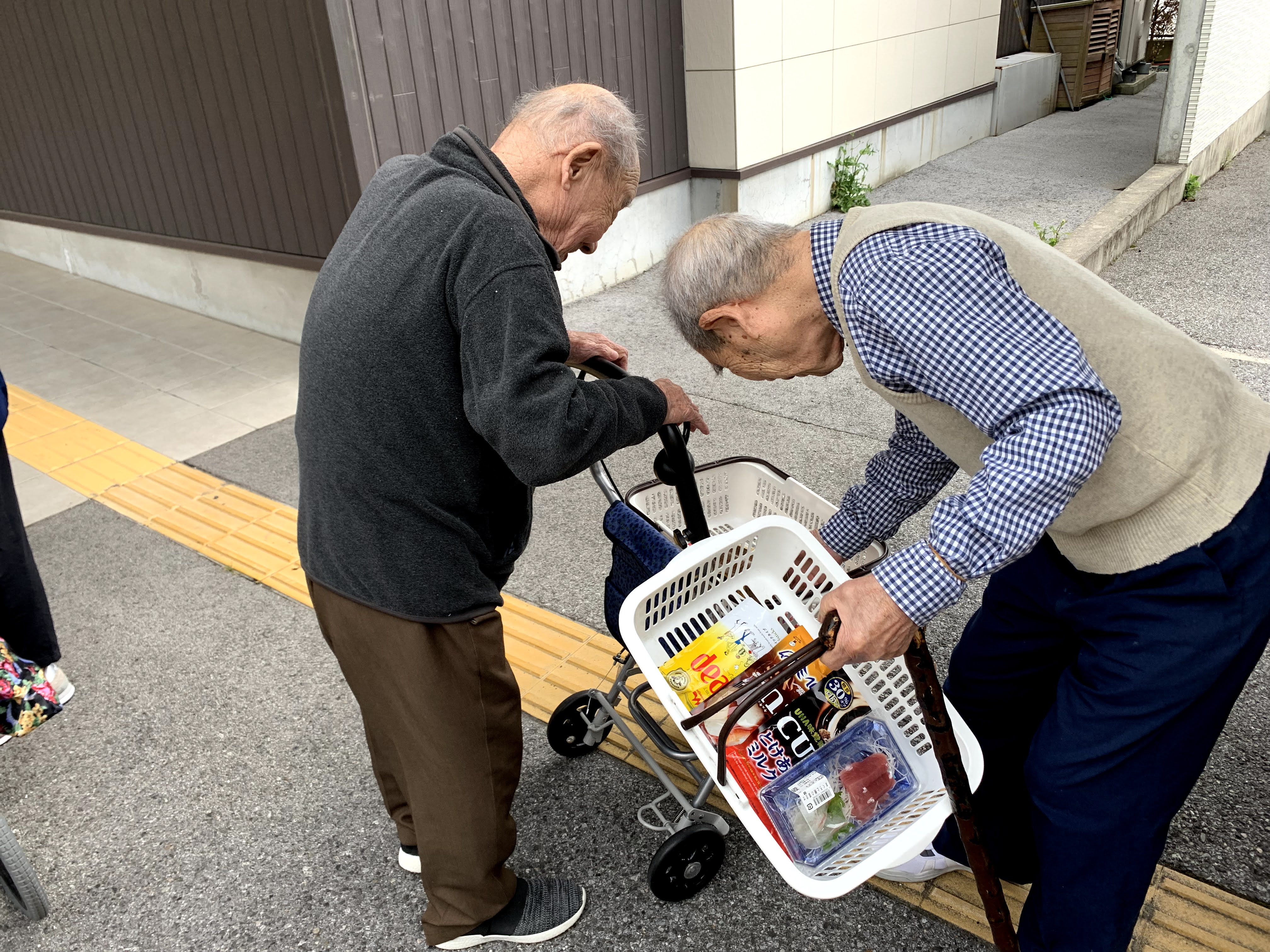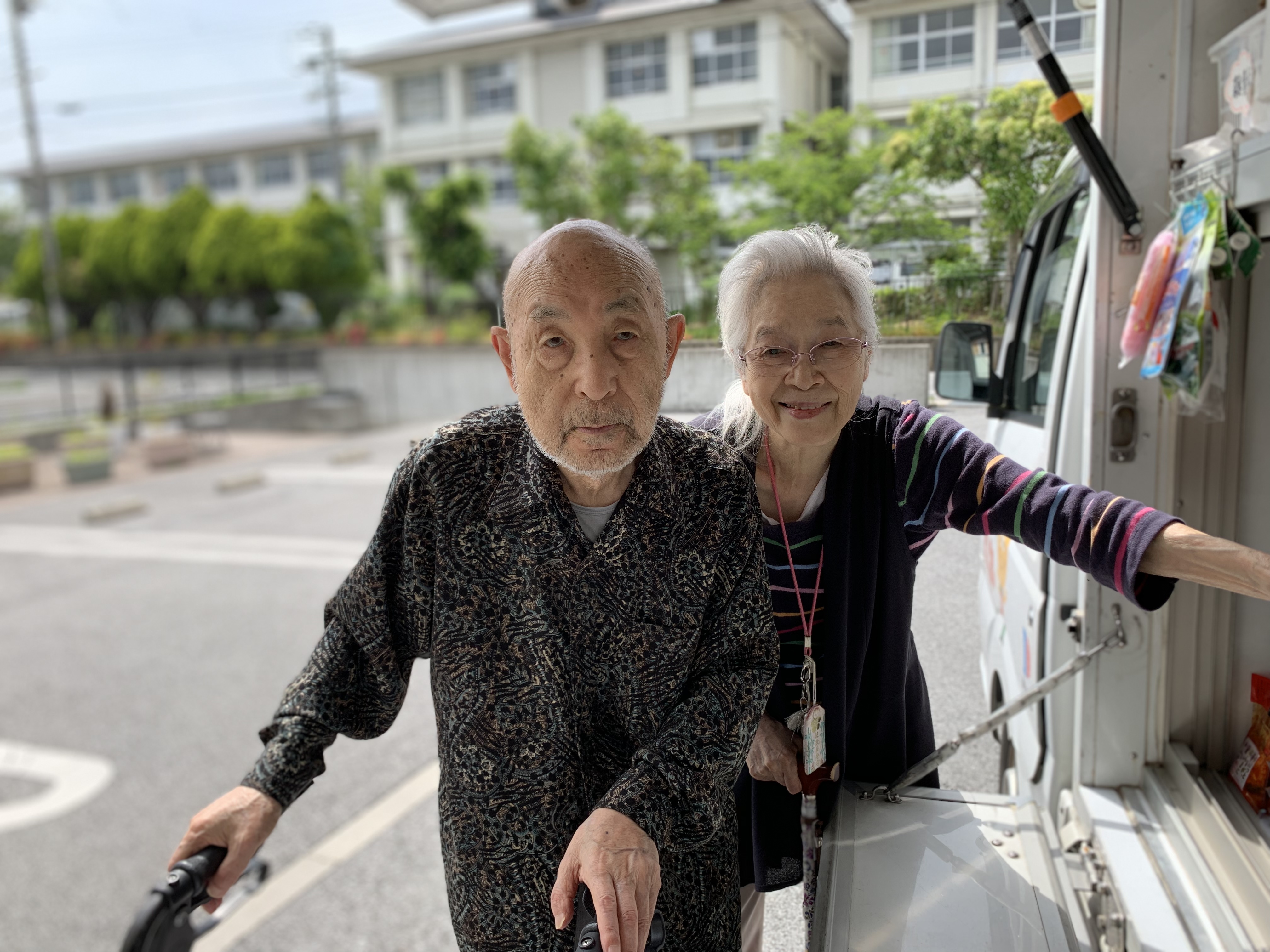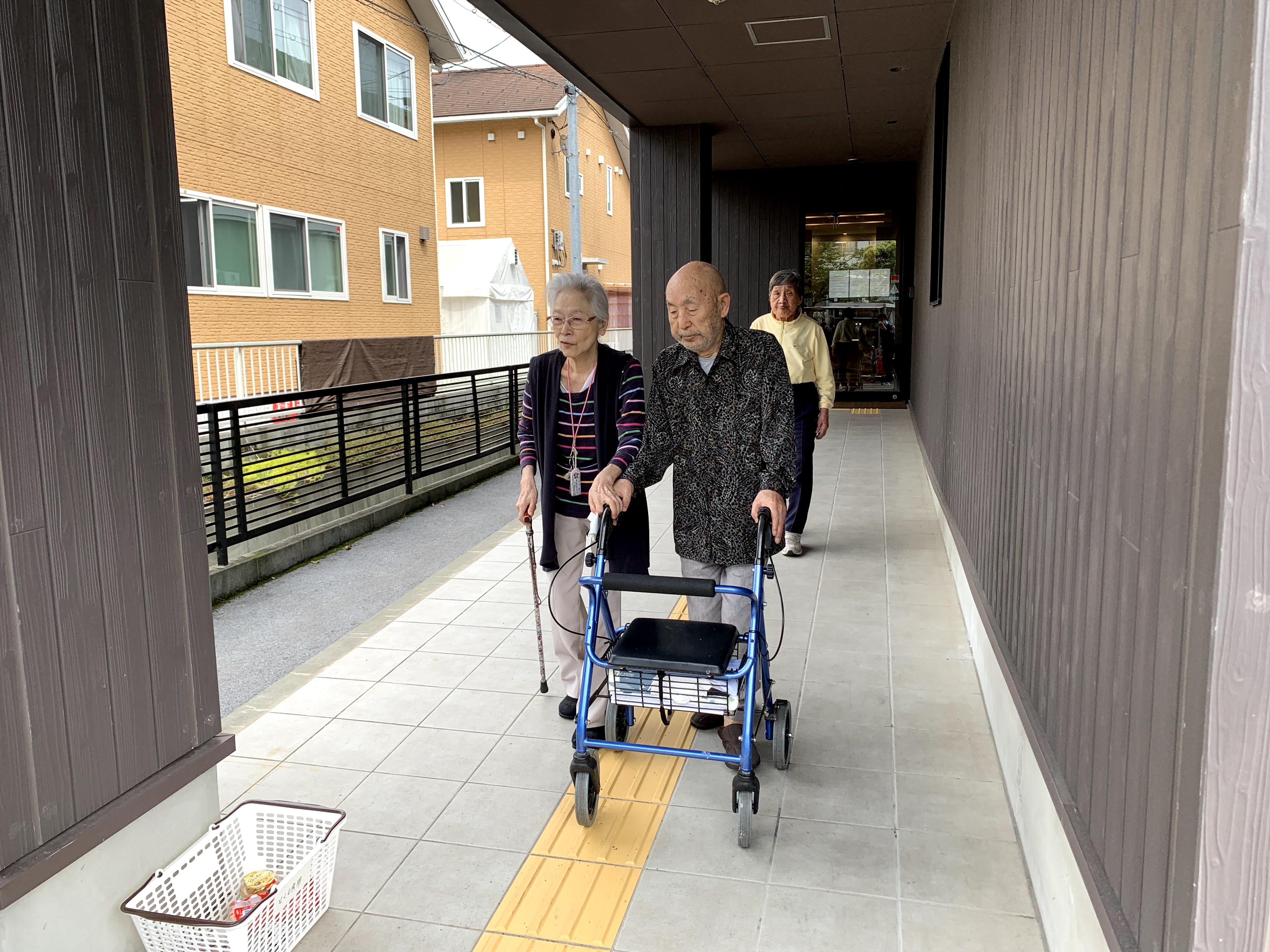 昼下がりの午後のひと時のご様子です。暑いせいかお客さんが今日は少なめでした。歩行のリハビリをされる男性利用者さまもひと休みされていました。仲良く旦那さんの裾をつかむ女性利用者さまもパシャリンコ📷